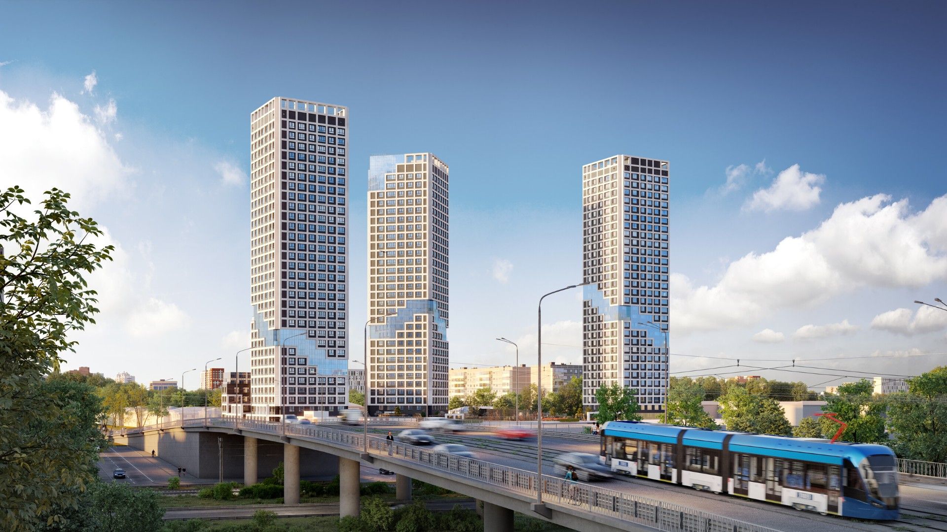 Архитектурная концепция ЖК «Динамика» отличается выразительностью и современным подходом. Фасады зодов украшены стеклянными ступенчатыми вставками, создающими запоминающийся визуальный акцент и добавляющими комплексу индивидуальности.