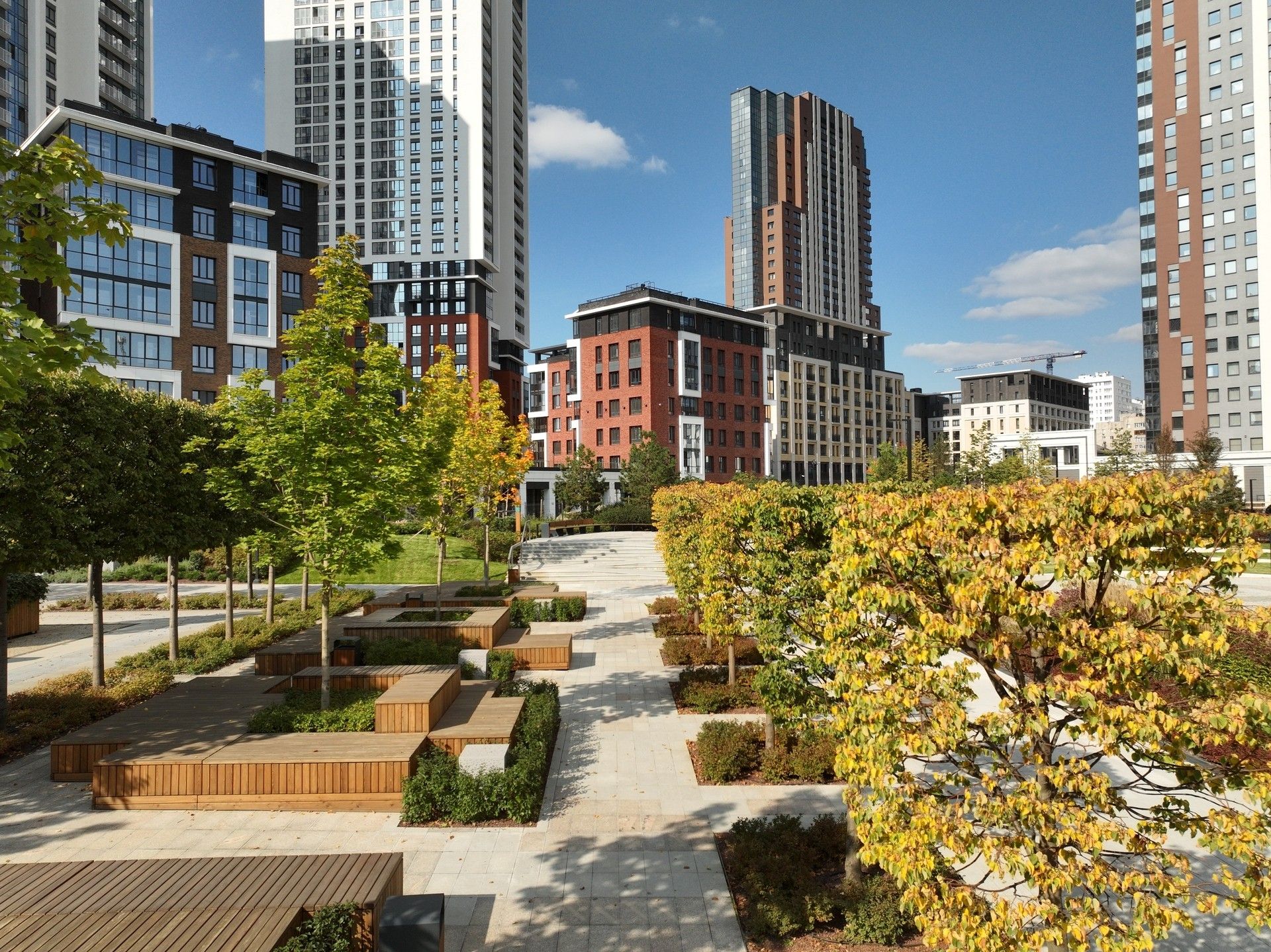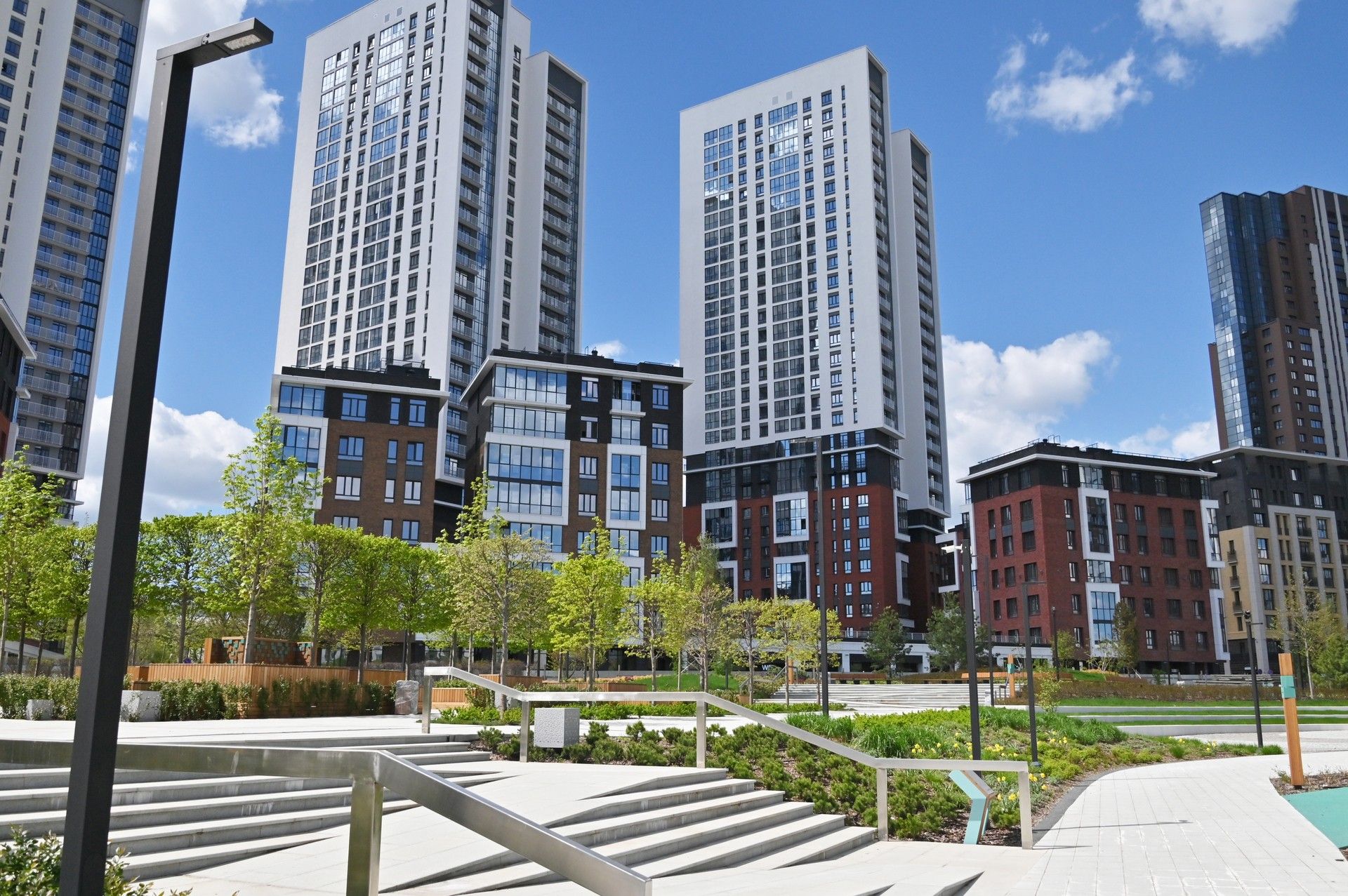 - Третья и четвертая очереди — сочетание высотной застройки с уютными урбан-виллами и клубными домами.