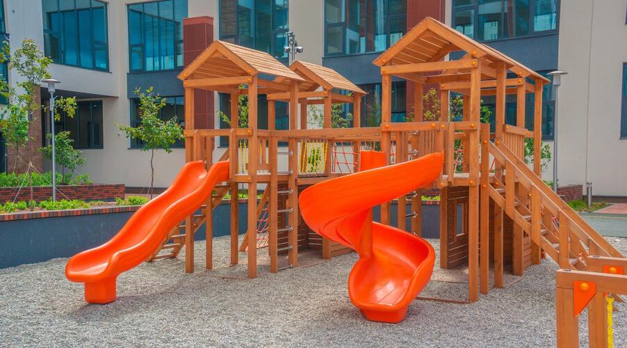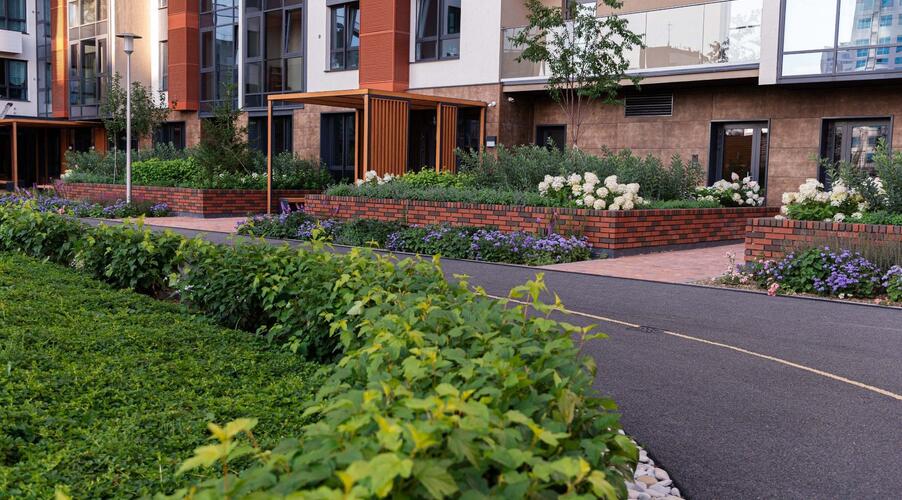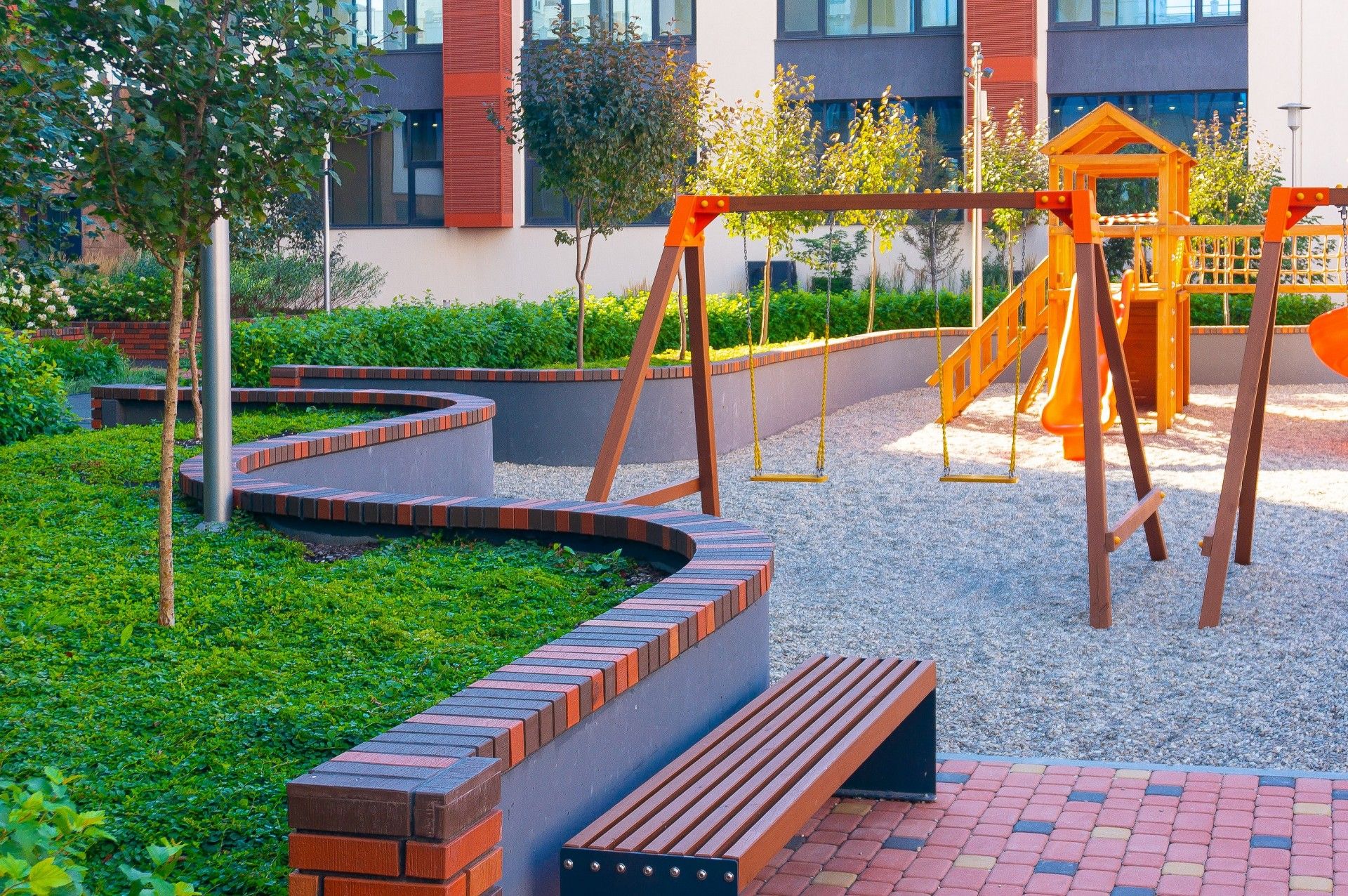 - Закрытая территория и двор без машин: Это базовое требование для комфорт-класса в Европе, но для Екатеринбурга, увы, все еще роскошь. В «Нагорном» реализована концепция «двор-парк». Весь транспорт вынесен на подземный паркинг и гостевые стоянки на периферии. Внутри — только люди, зелень и архитектура.