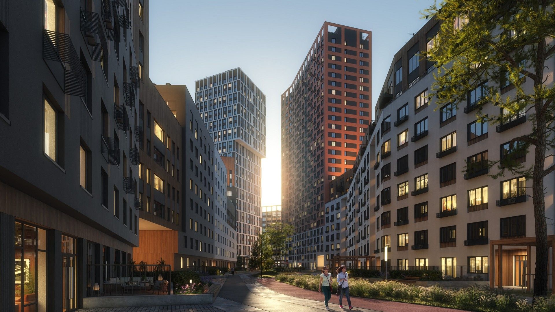 Территория комплекса спроектирована как единое архитектурно-ландшафтное пространство с продуманным зонированием для разных возрастных групп и потребностей.