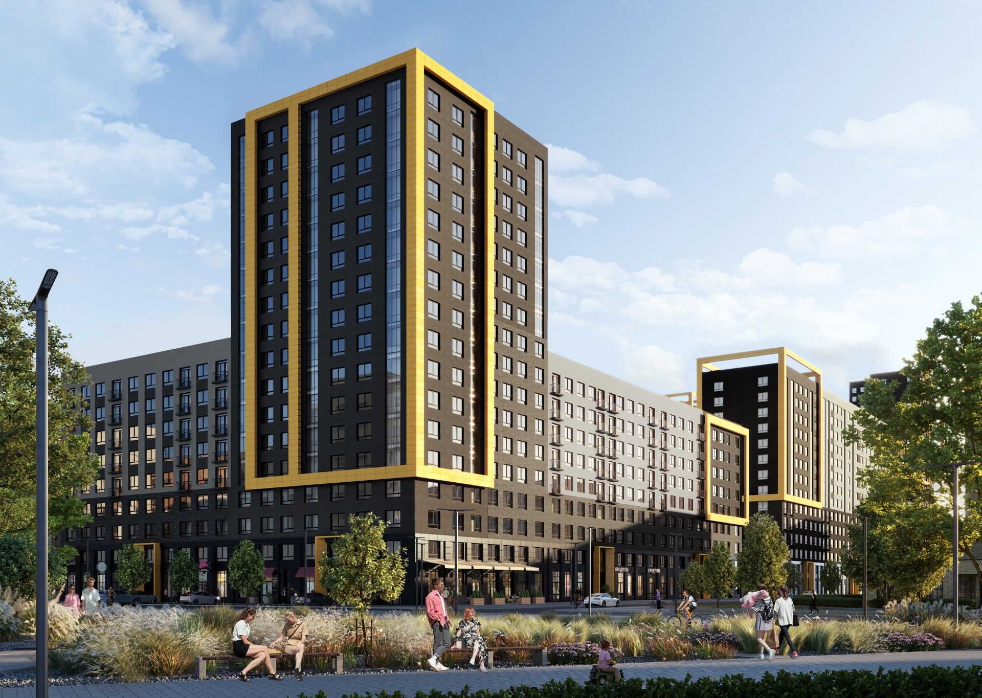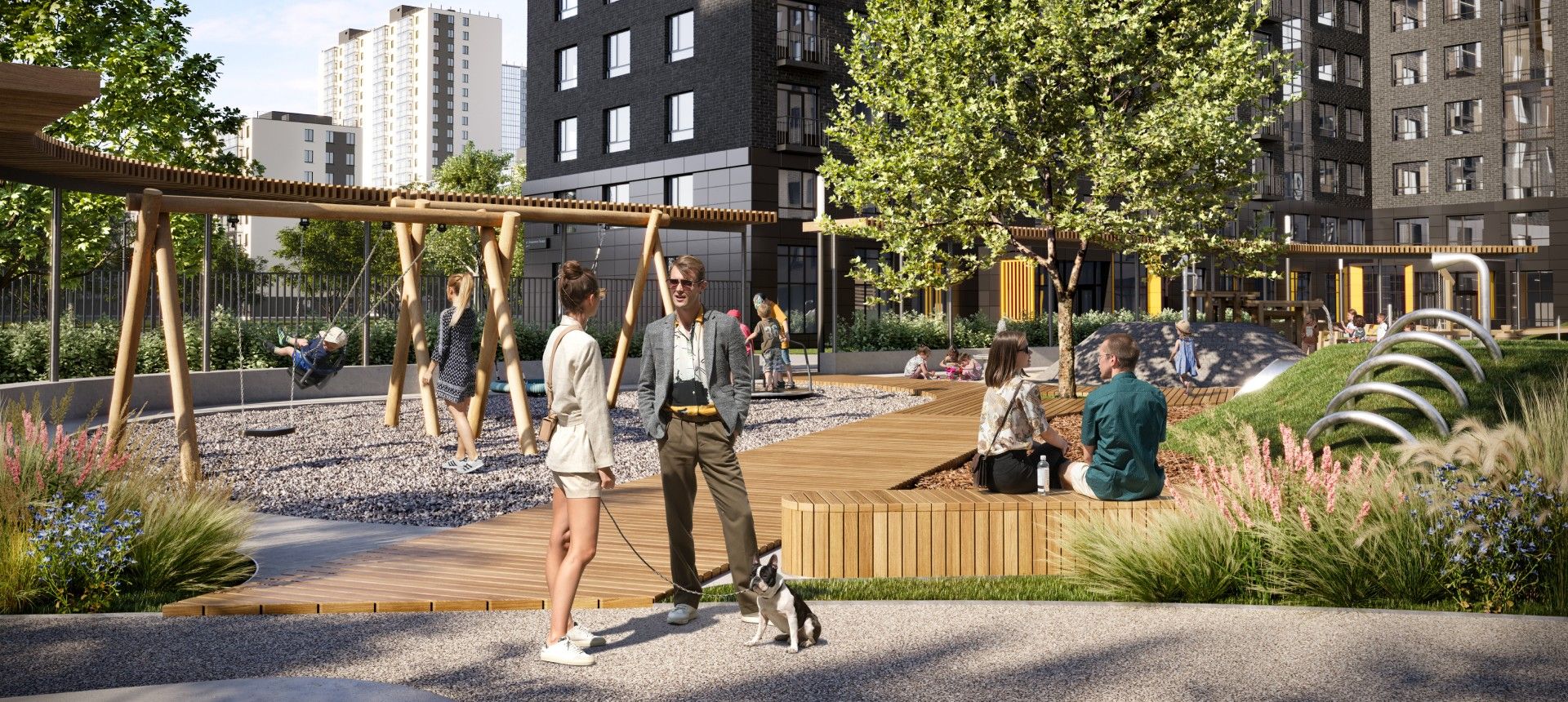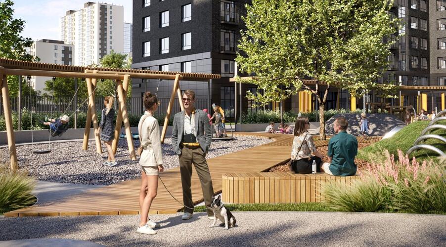 - Молодые семьи с детьми. Пространство двора, разработанное с участием педагогов и психологов, а также близость школ и садов делают проект идеальным для жизни и развития детей.