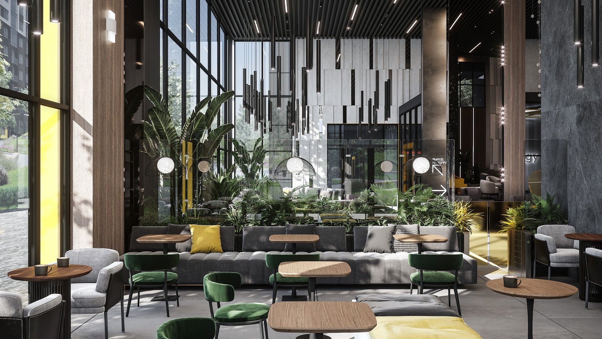- Пространства для коворкинга и встреч.