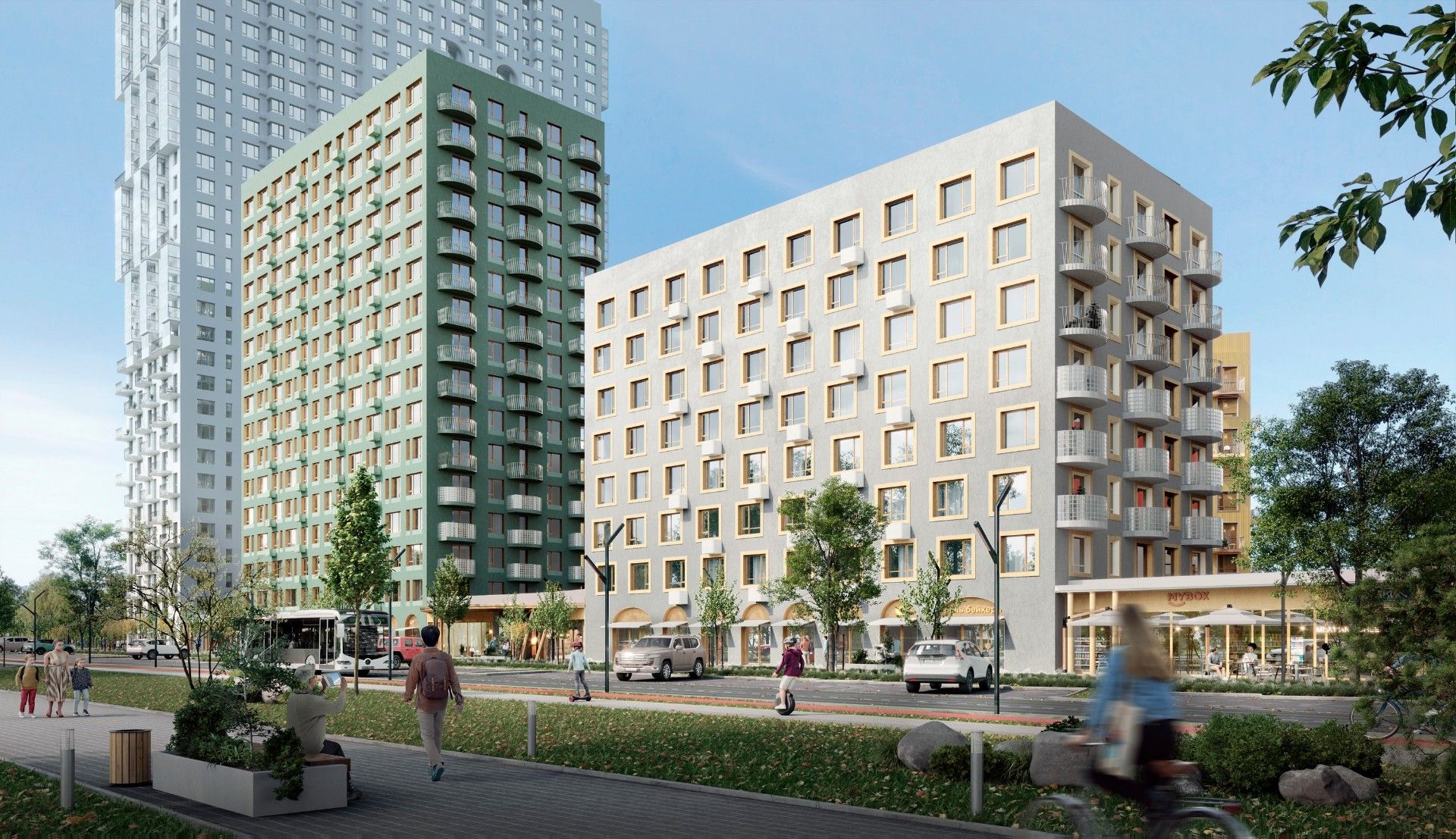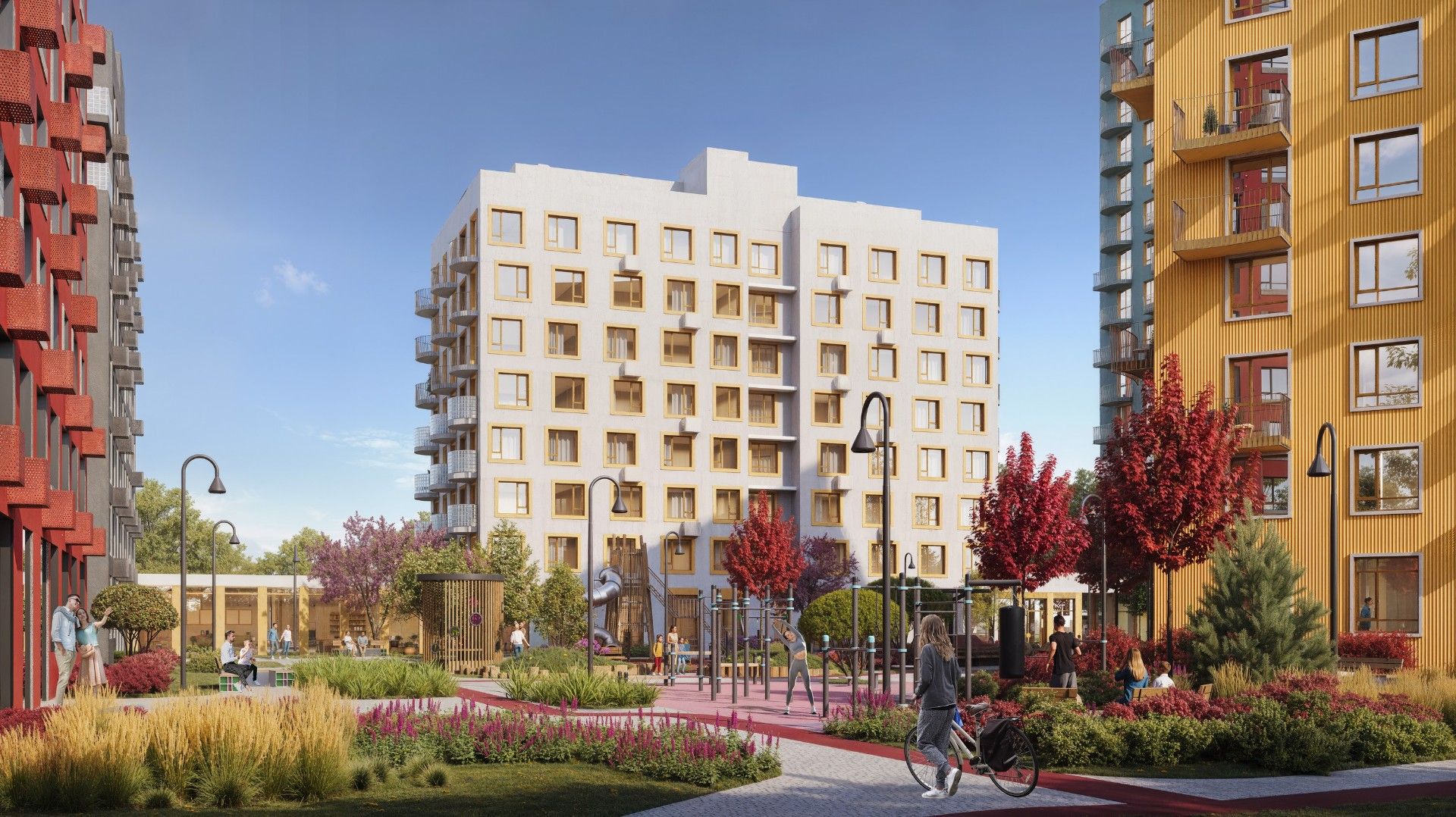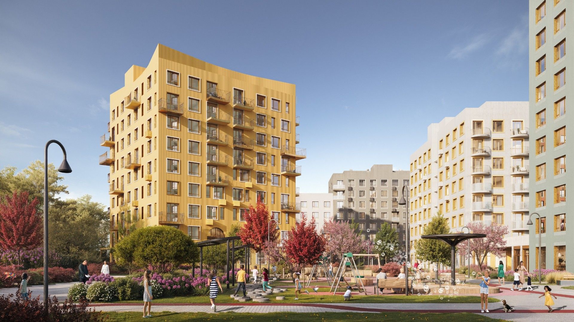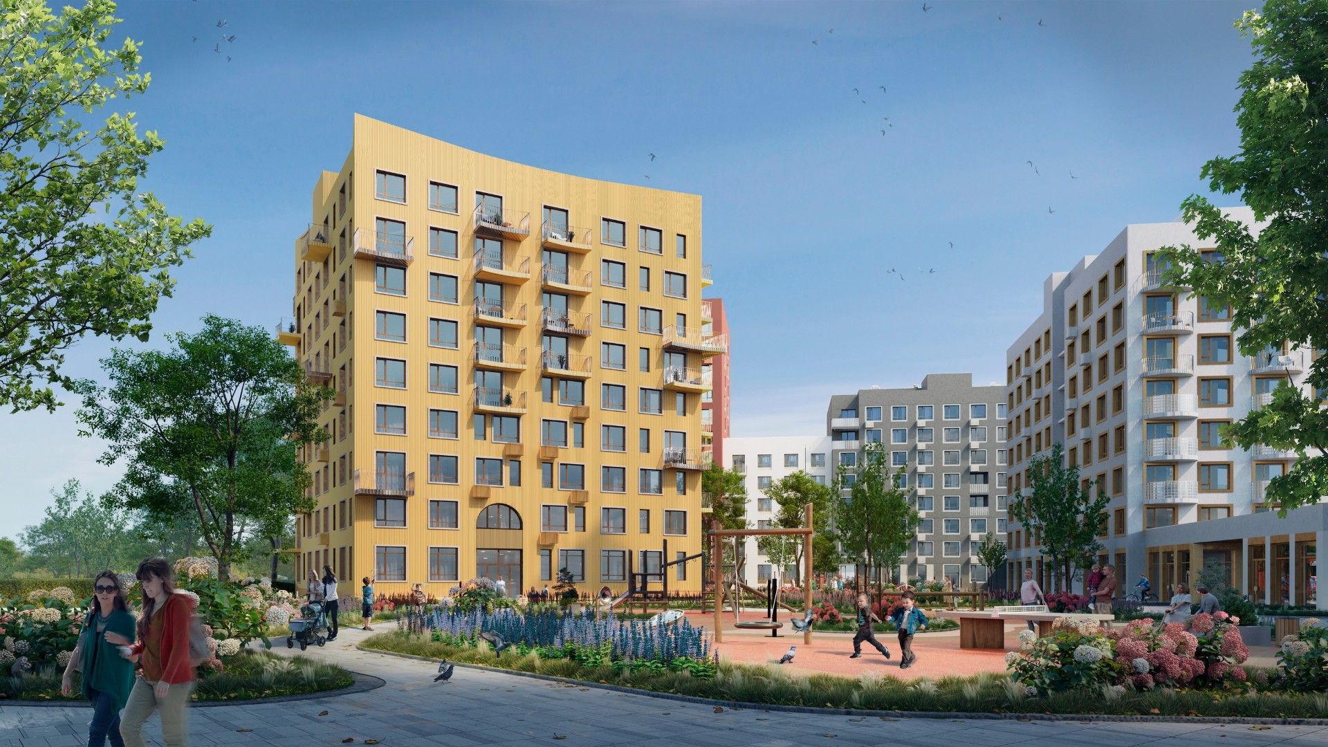 - Молодые семьи с детьми оценят развитую социальную инфраструктуру, безопасную дворовую территорию без машин и близость детских садов и школ.