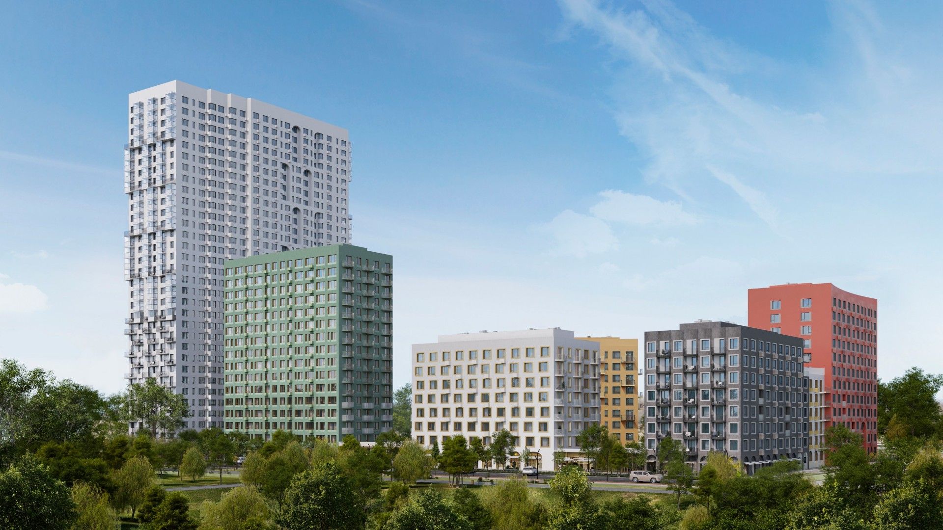 Архитектурная концепция ЖК «Движение» основана на принципе переменной этажности — от 8 до 32 этажей. Такой подход позволяет создать разнообразную среду проживания: жители могут выбрать кулуарность низкоэтажной секции с малым числом соседей или панорамные виды с верхних этажей высотных корпусов.