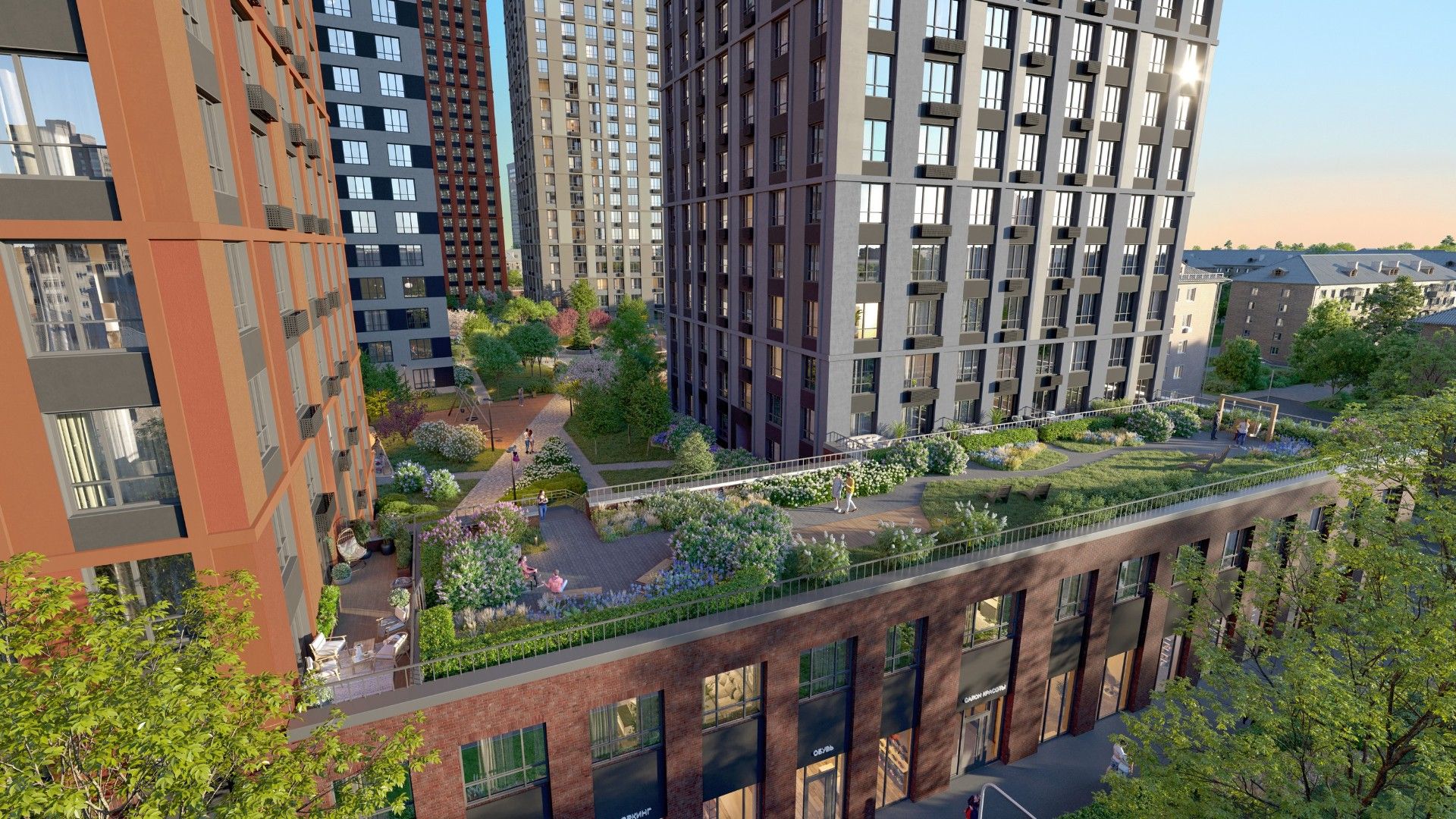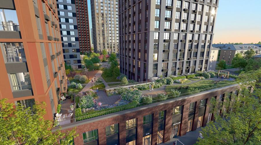 | Двор-сад на стилобате | Приватное, безопасное благоустроенное пространство без машин | Комфортный отдых для детей и взрослей прямо рядом с домом. |