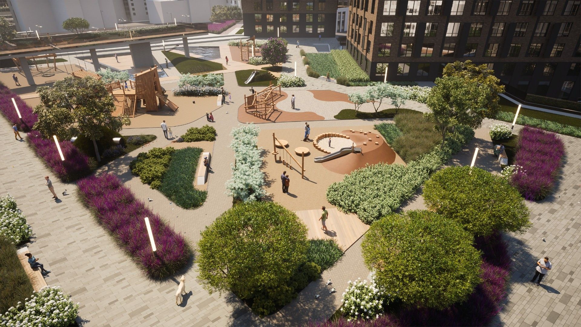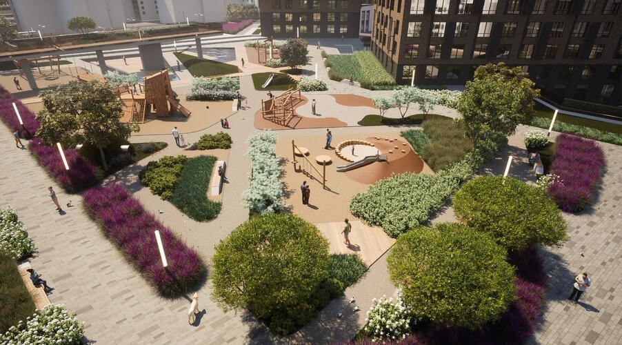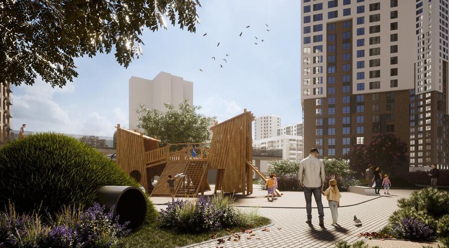 - Благоустройство: Продуманное озеленение, детские площадки разных возрастов, спортивные зоны и велодорожки.