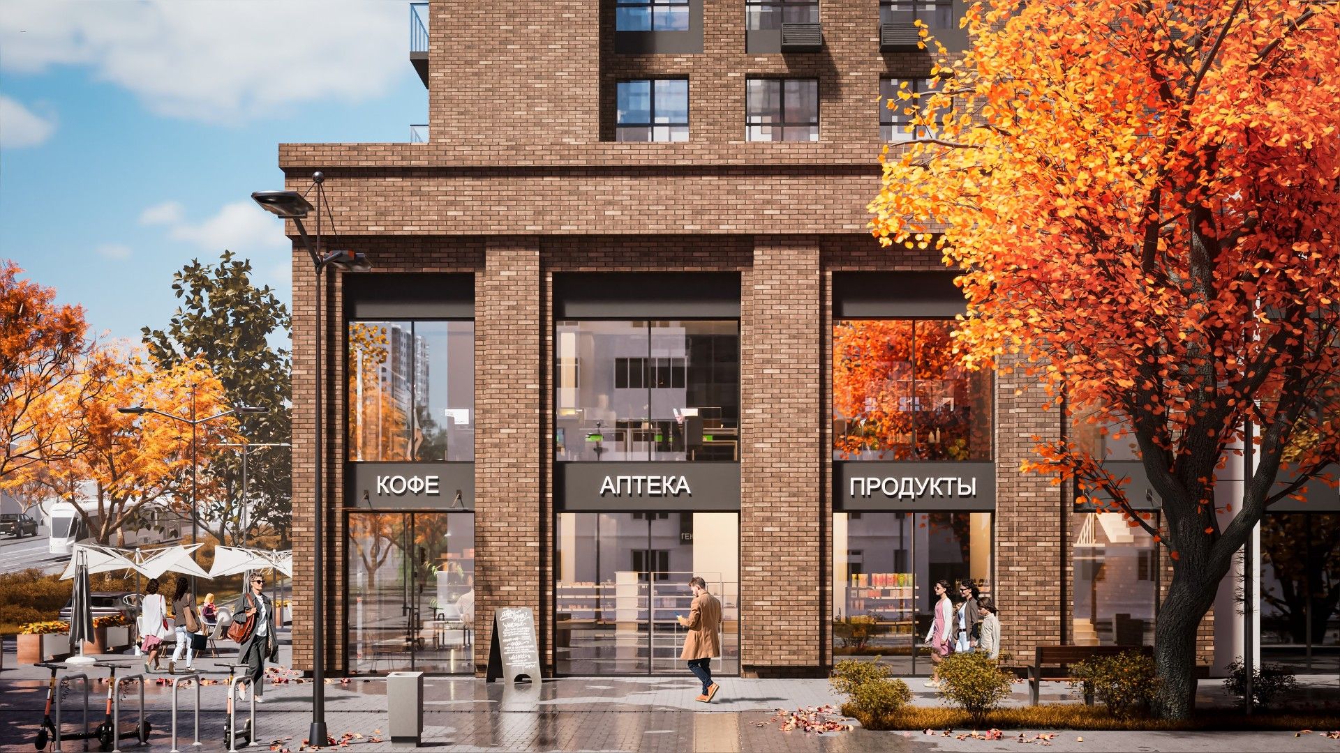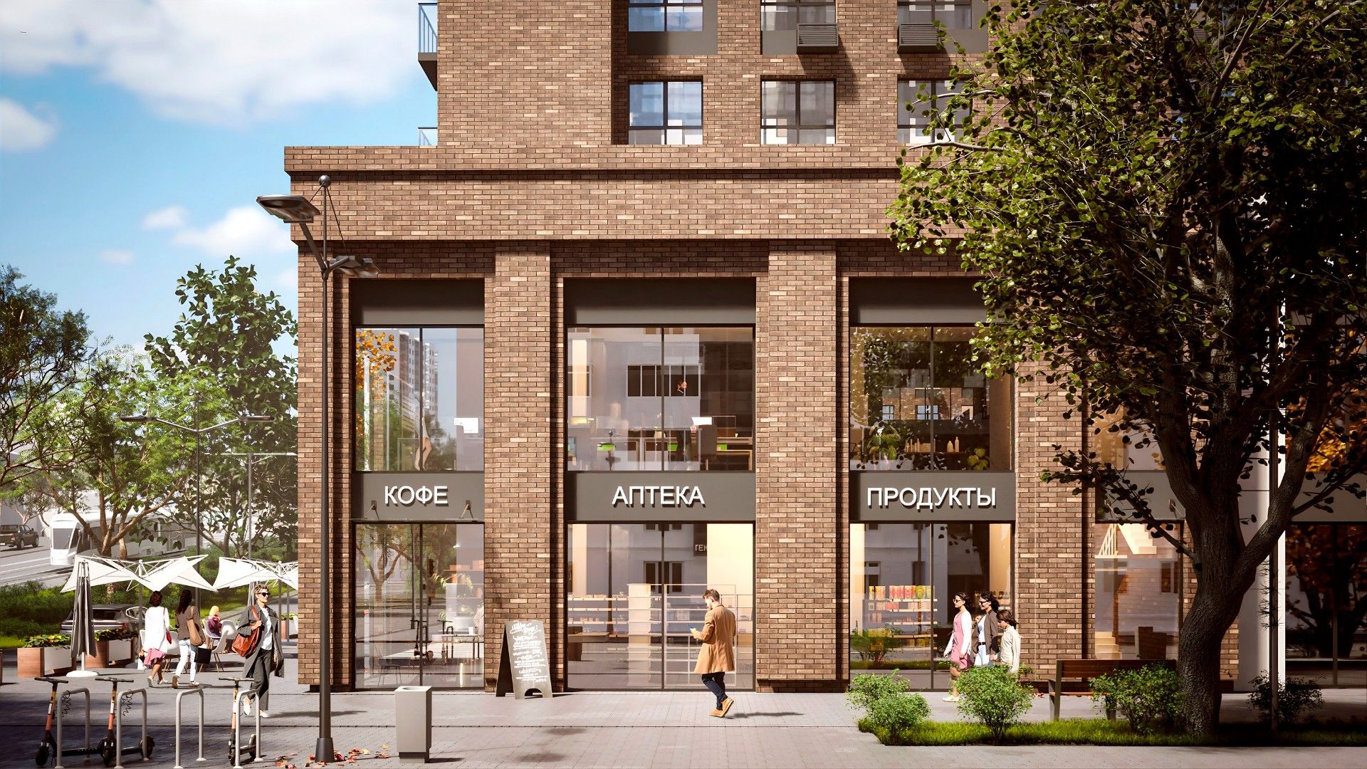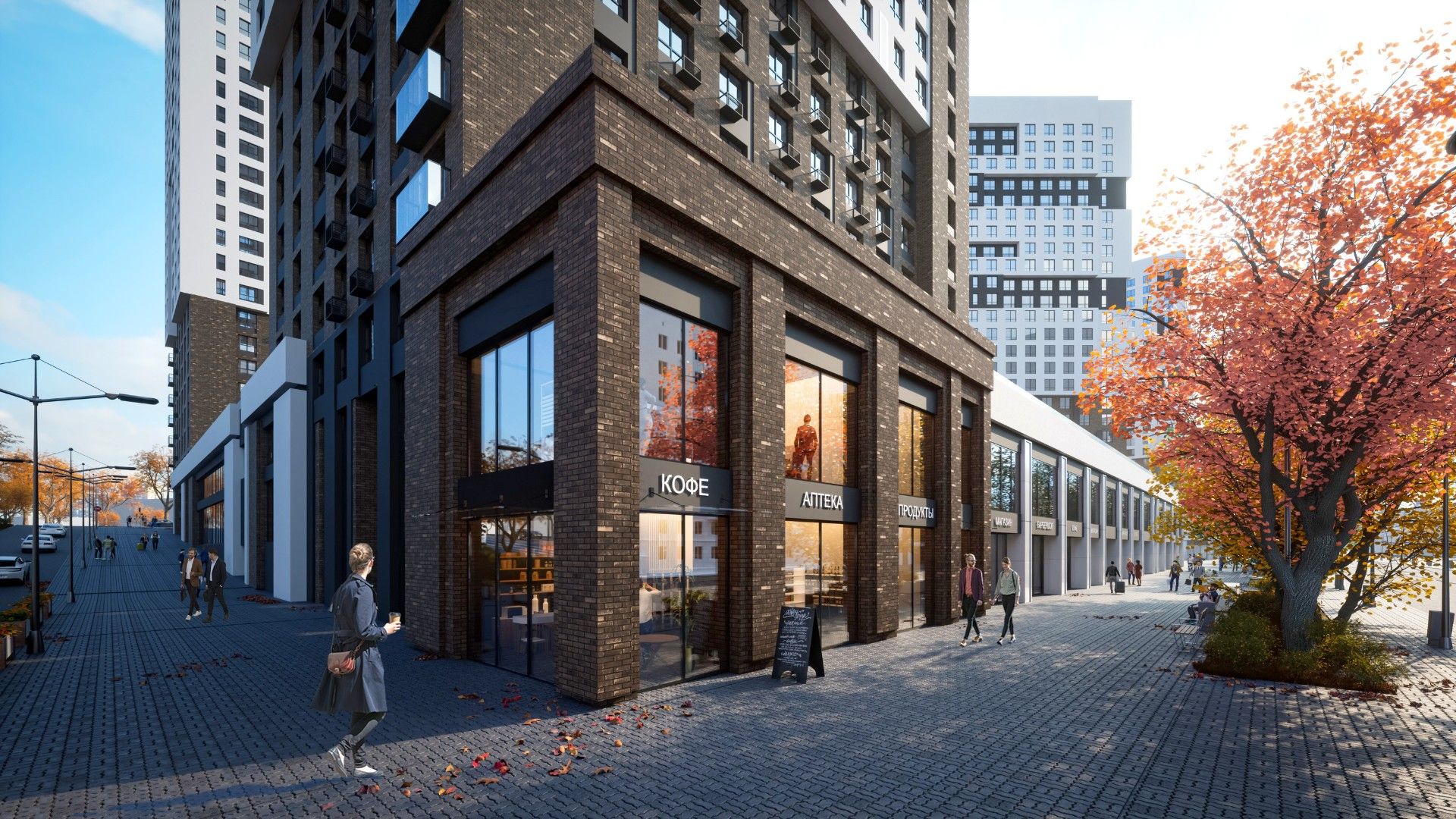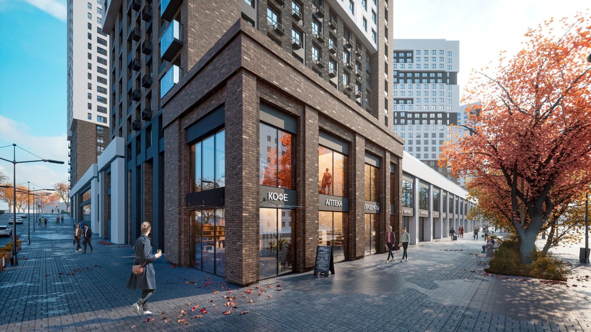На первых этажах домов комплекса разместятся коммерческие помещения, где откроются магазины, парикмахерские, фитнес-клуб с бассейном, медицинский центр и рестораны.