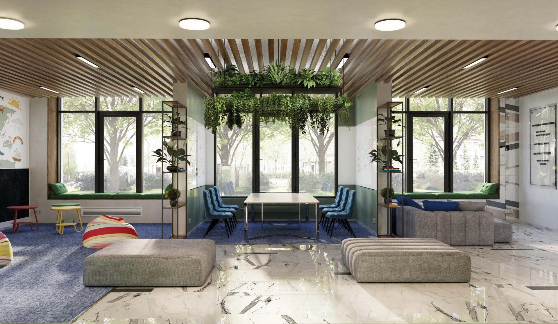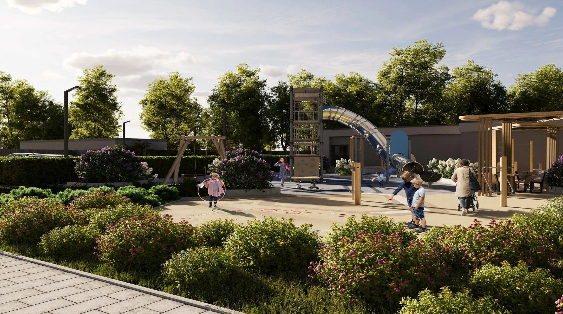 - Функциональные игровые площадки с безопасным покрытием для детей разных возрастов.