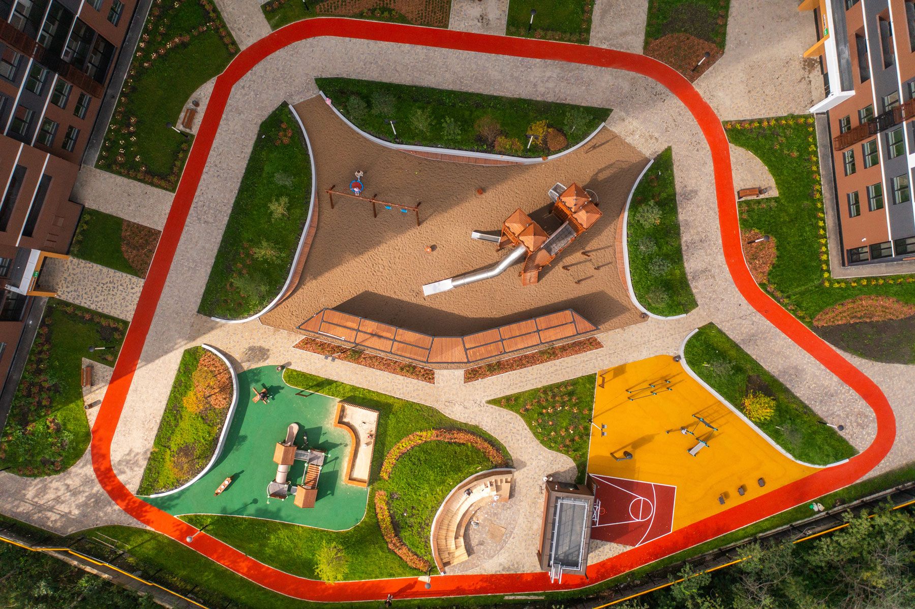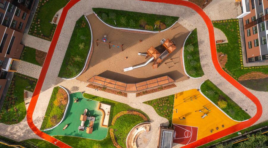 ЖК «LIVE» спроектирован с акцентом на создание комфортной и безопасной среды. Проект реализует концепцию дворов без машин, где приоритет отдан пешеходам, играм детей и отдыху взрослых.