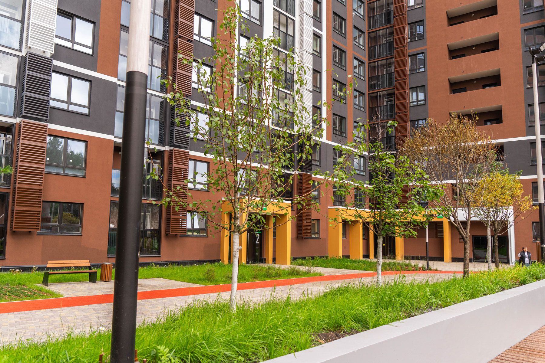 | Концепция двора | Закрытый двор-парк без машин, объединяющий две очереди | Стандартное благоустройство, часто совмещенное с автомобильными проездами |