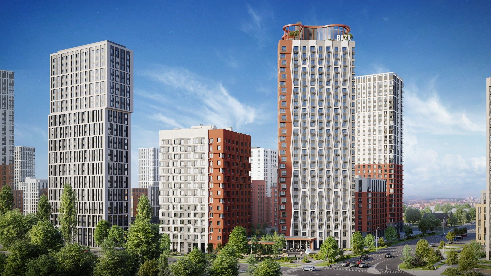Проект реализуется в две очереди. Первая очередь, сдача которой намечена на III-IV квартал 2025 года, включает два разновысотных корпуса (15 и 29 этажей), соединенных общим просторным лобби. Дома возводятся по надежной кирпично-монолитной технологии.