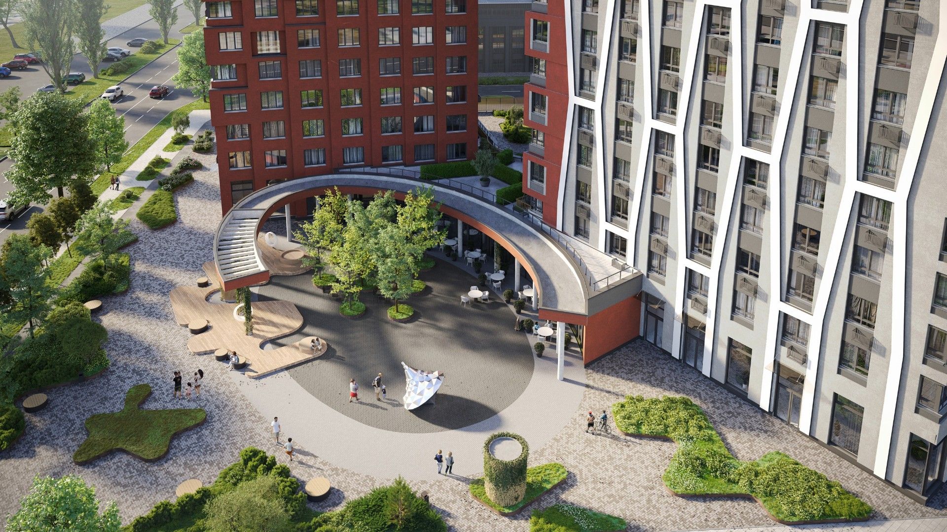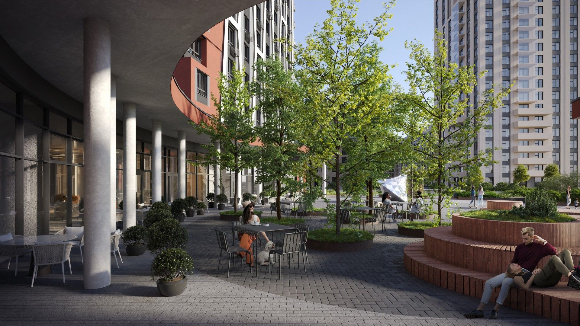 - Комьюнити-центр на крыше: Бесплатное пространство для работы и отдыха с коворкингом, зоной для мероприятий и гриль-площадкой с панорамным видом на город.