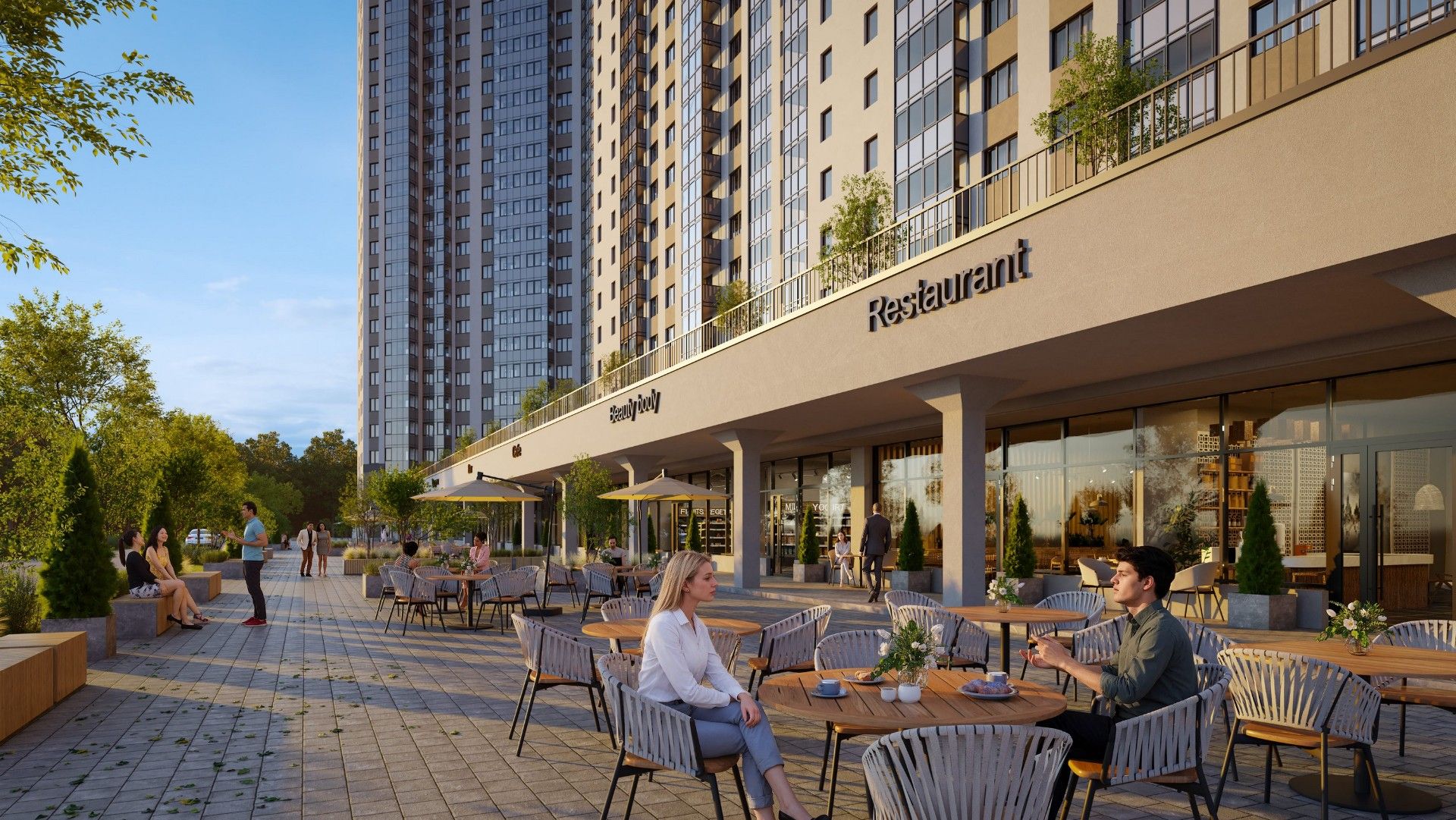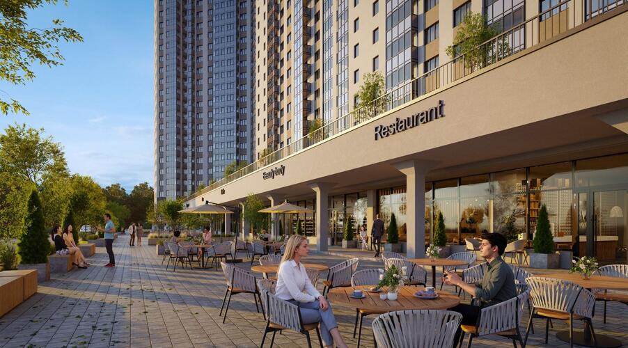 - Торговля и сервисы: на первых этажах дома расположатся магазины, кафе и сервисы, включая пекарню, развивающий центр для детей и пункты выдачи заказов