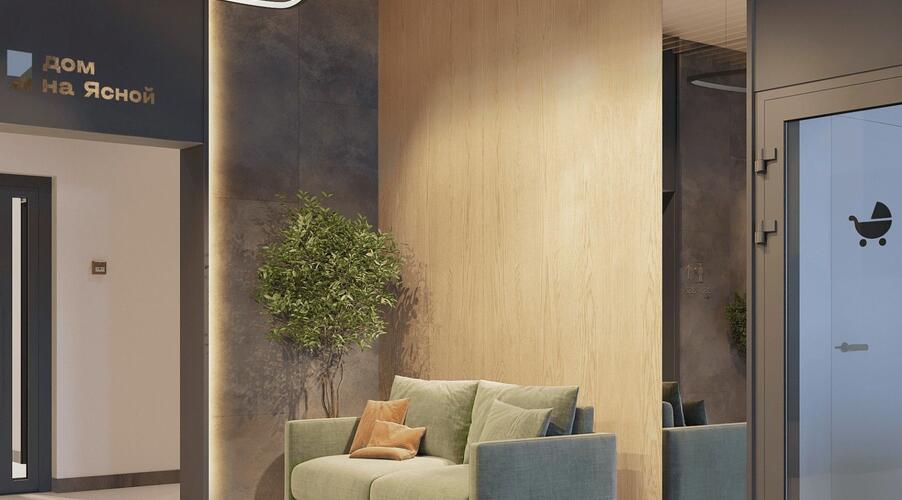 Продуманные входные группы создают ощущение надежного пространства с момента входа в здание. Отсутствие порогов и ступеней обеспечивает удобство для маломобильных граждан и родителей с колясками. В холлах оборудованы мягкие зоны с диванами и пуфами для комфортного ожидания.