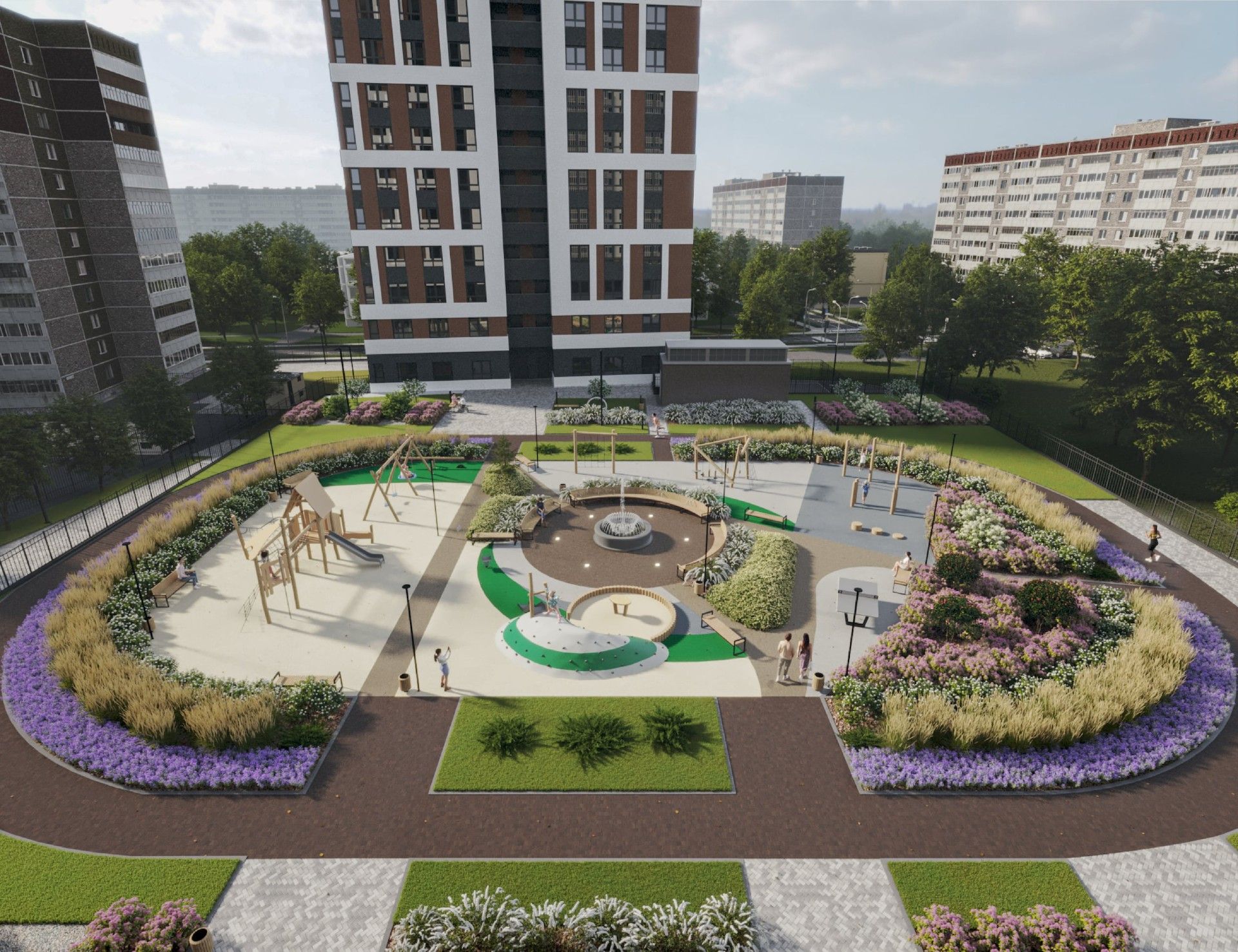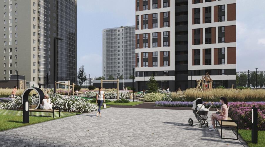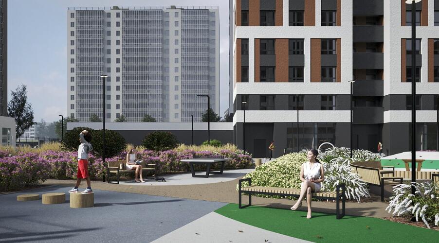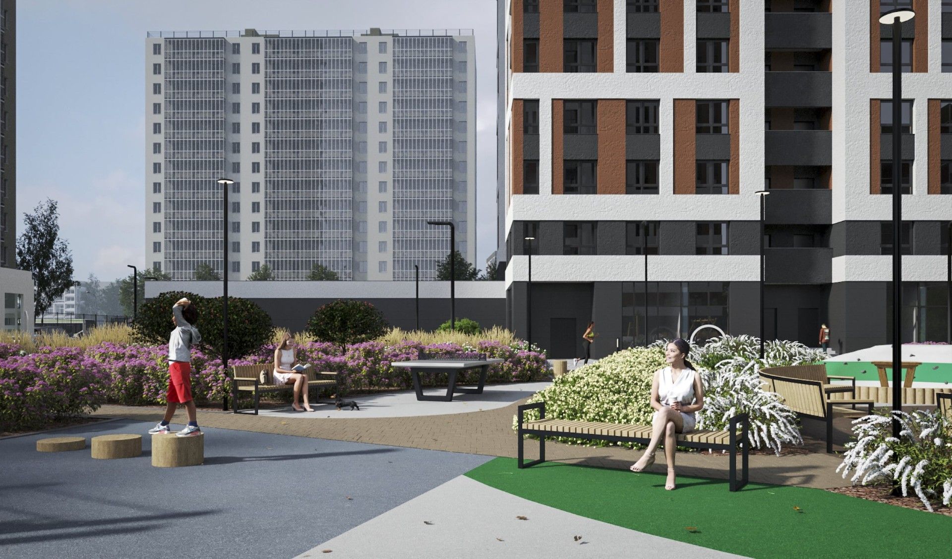 - Продуманное зонирование — двор без машин, подземный паркинг, игровые и спортивные площадки.