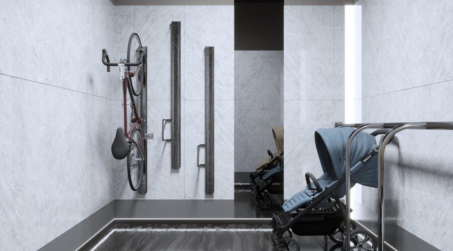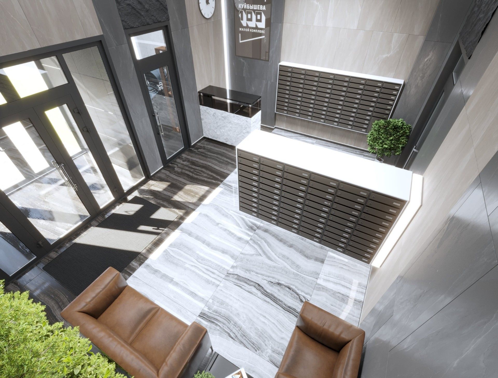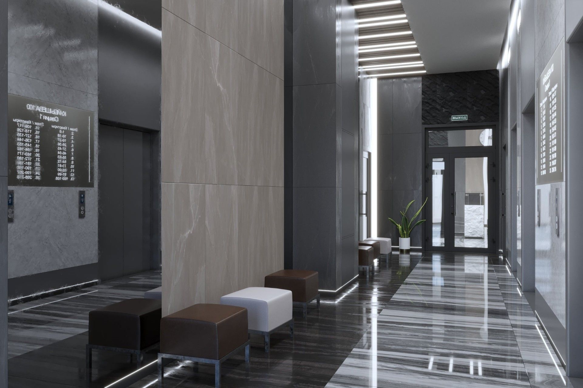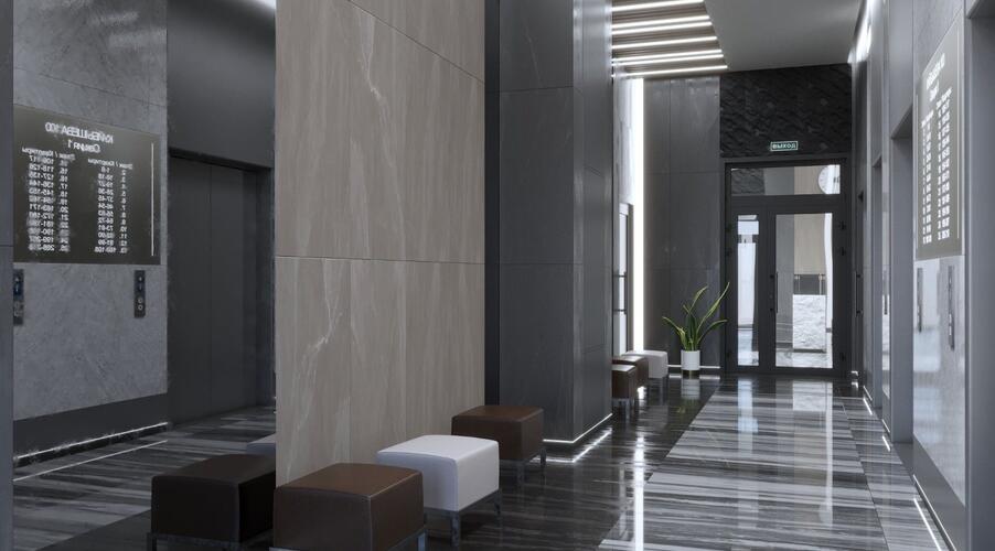 - Продуманные общественные зоны — холлы с потолками 3,9 м, консьерж-служба, колясочные.