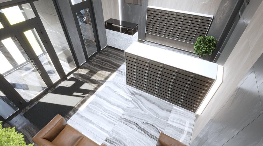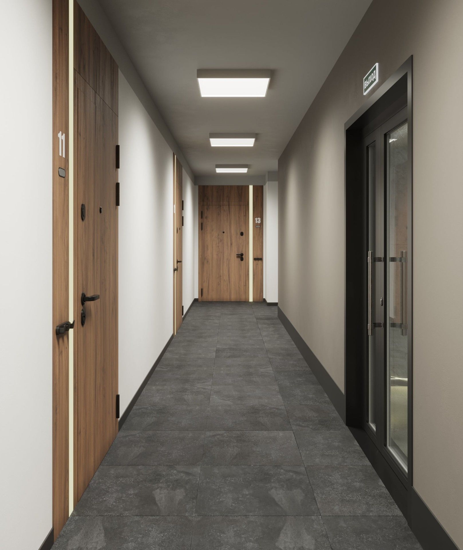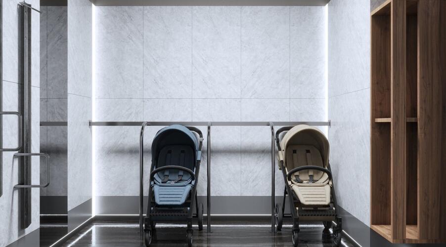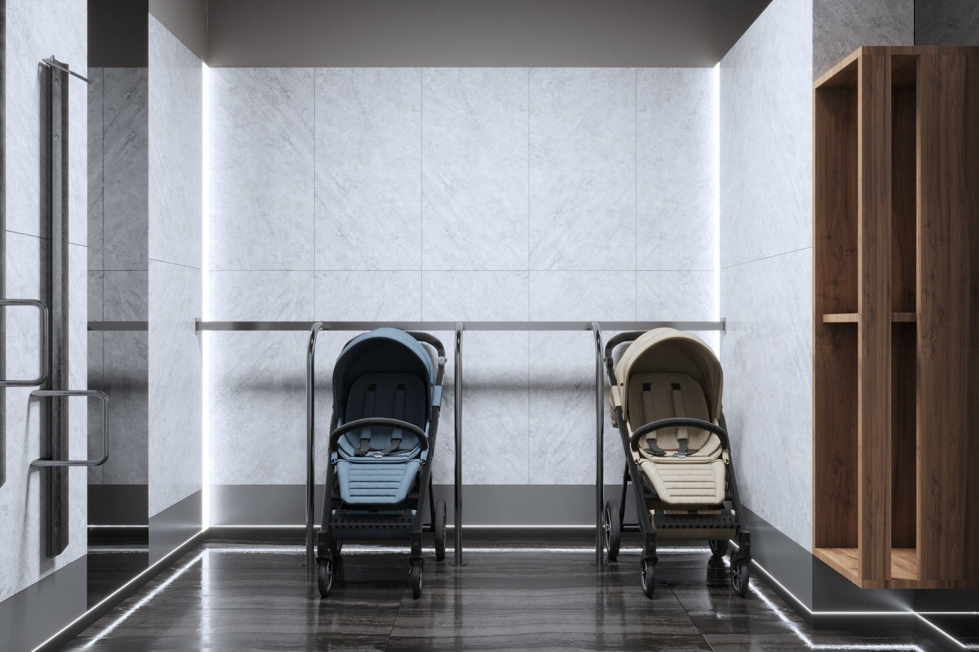 - Продуманные общественные зоны — холлы с потолками 3,9 м, консьерж-служба, колясочные.