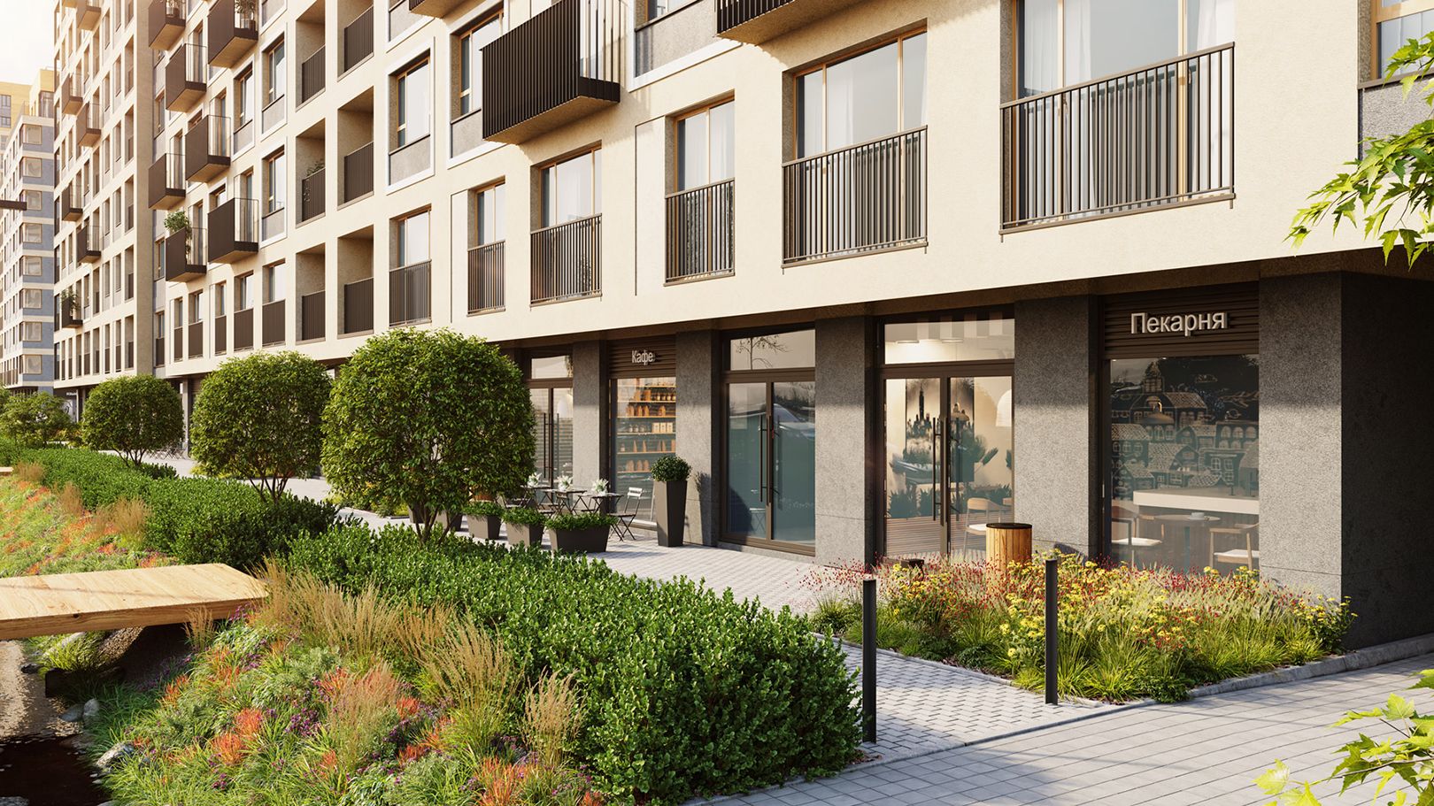 | Торговые и сервисные помещения | На первых этажах домов расположатся кафе, магазины, аптеки и службы быта, что формирует среду шаговой доступности. |