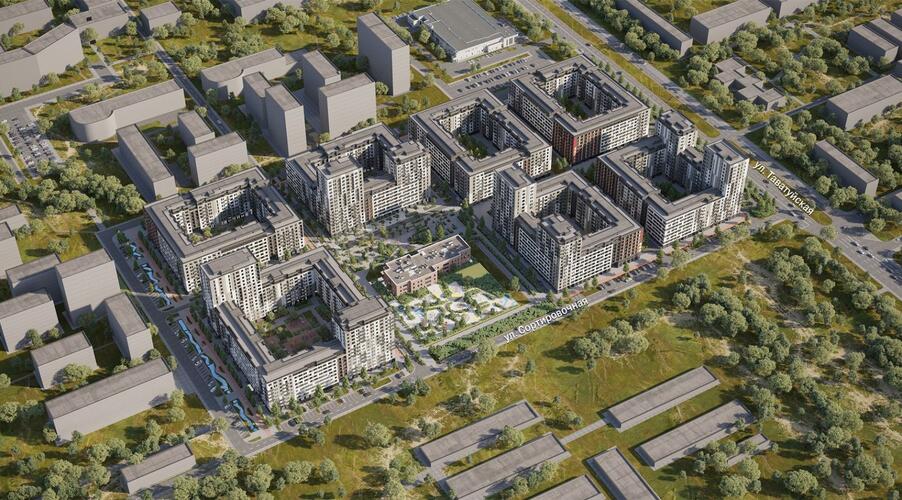 - Экология и благоустройство: Особое внимание уделено озеленению и созданию рекреационной зоны вдоль реки Ольховки. Запланированы дождевые сады, велодорожки и разноуровневые дворы без машин.