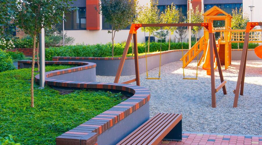 - Закрытая территория и двор без машин: Это базовое требование для комфорт-класса в Европе, но для Екатеринбурга, увы, все еще роскошь. В «Нагорном» реализована концепция «двор-парк». Весь транспорт вынесен на подземный паркинг и гостевые стоянки на периферии. Внутри — только люди, зелень и архитектура.