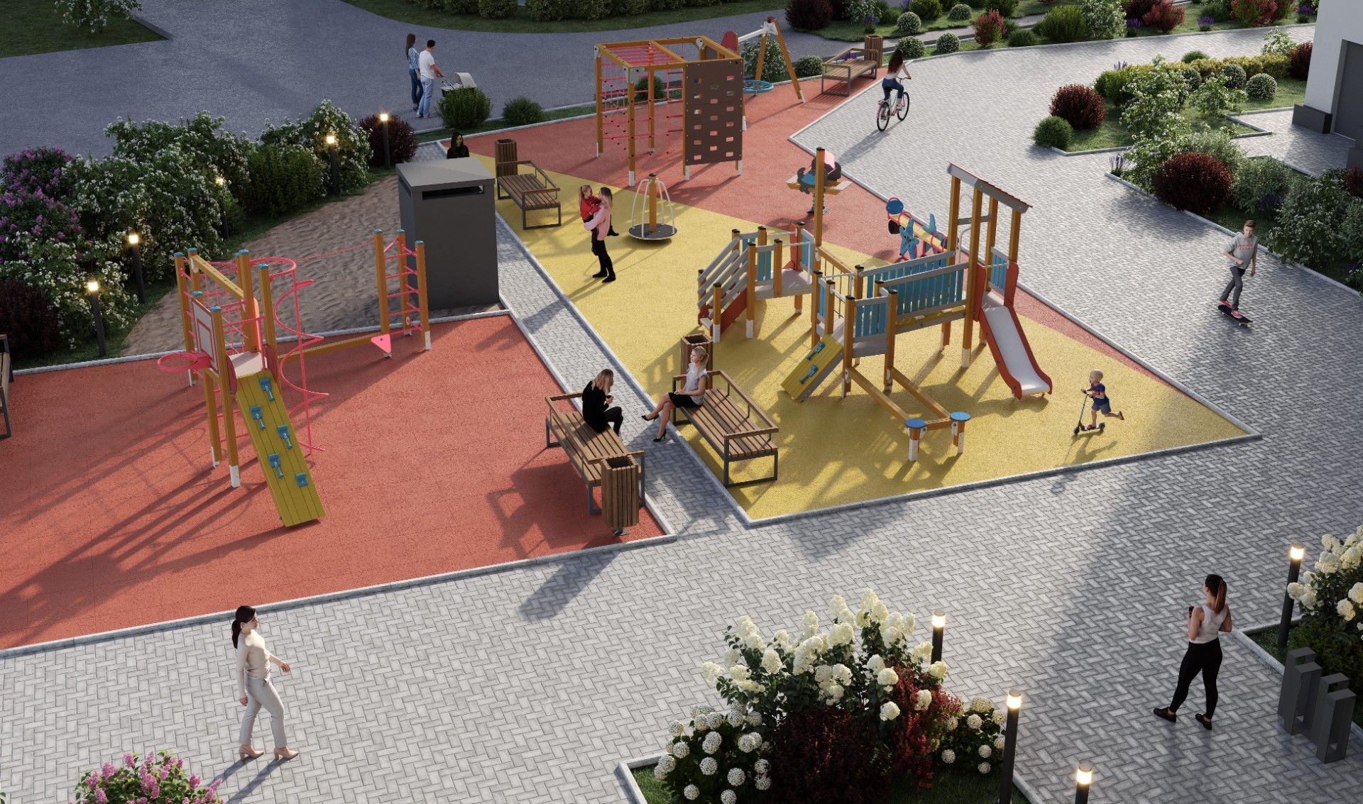 Концепция благоустройства в ЖК «Огни Исети» направлена на создание комфортной жилой среды для разных категорий жильцов. Архитекторы и проектировщики предусмотрели зонирование территории с выделением рекреационных пространств, детских площадок и автомобильной инфраструктуры.