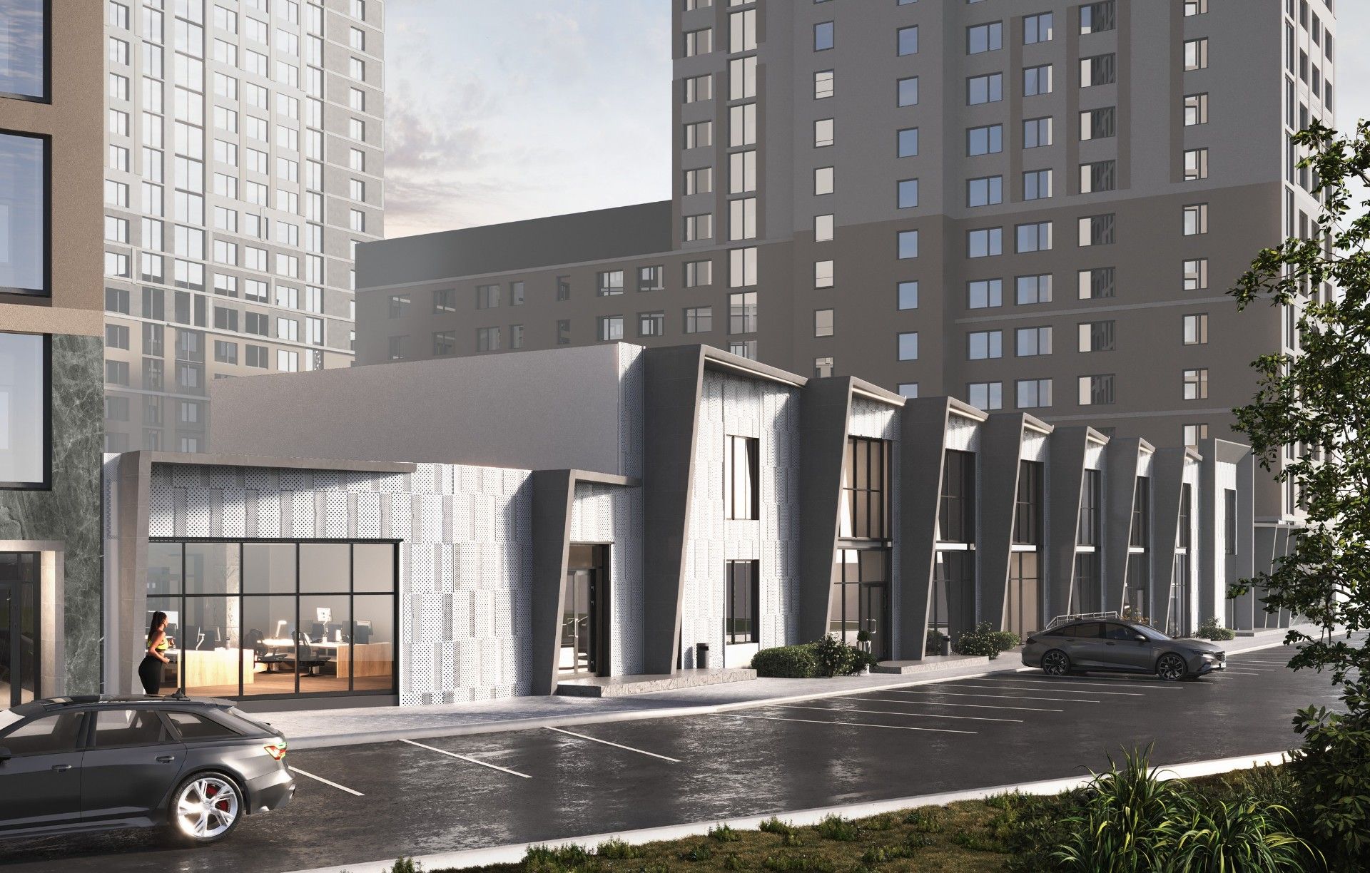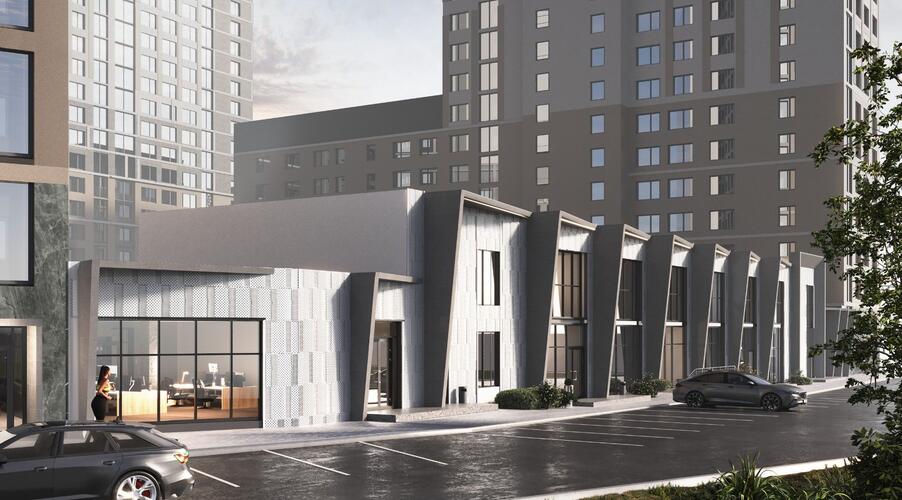 - Собственная пешеходная галерея, соединяющая жилую и торгово-офисную части комплекса.