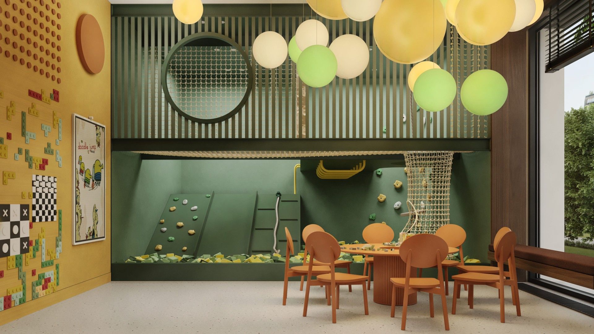 Территория полностью закрыта для автомобилей, создавая безопасную среду.