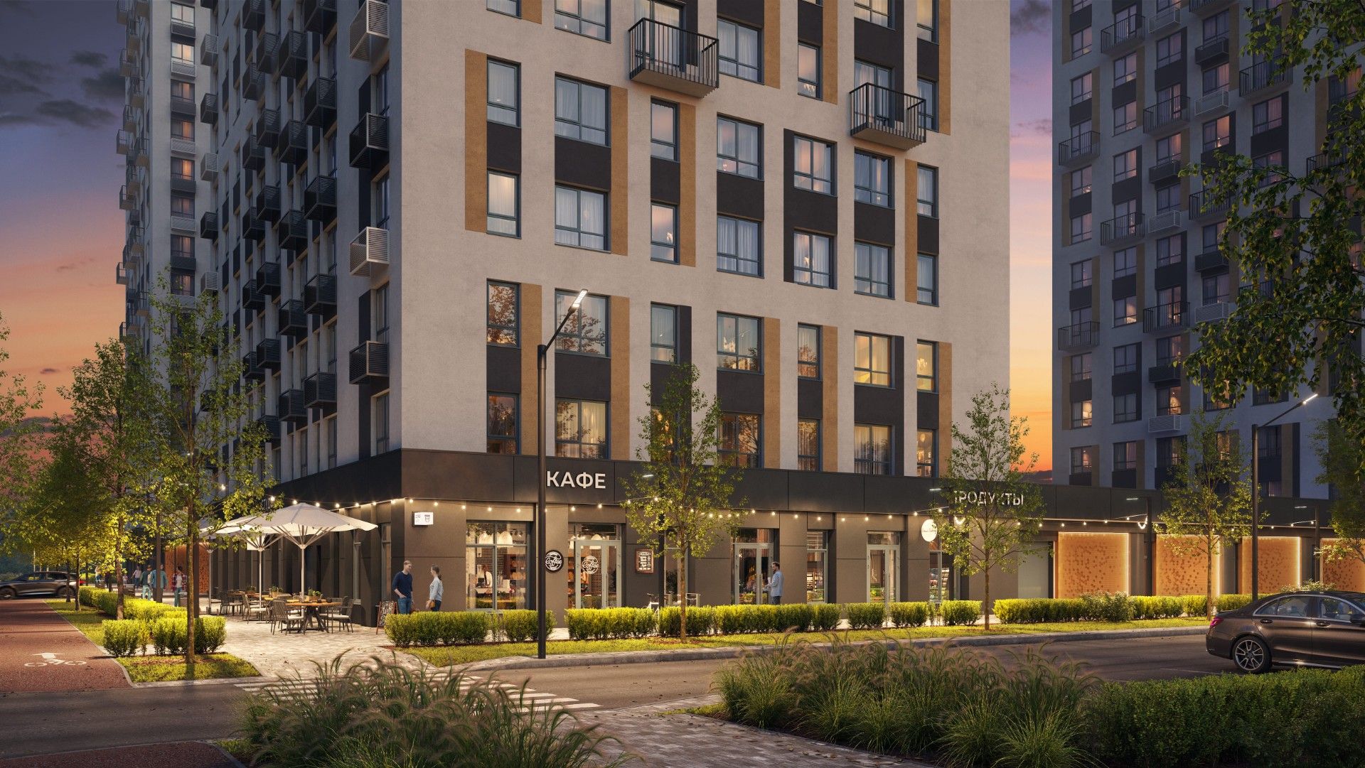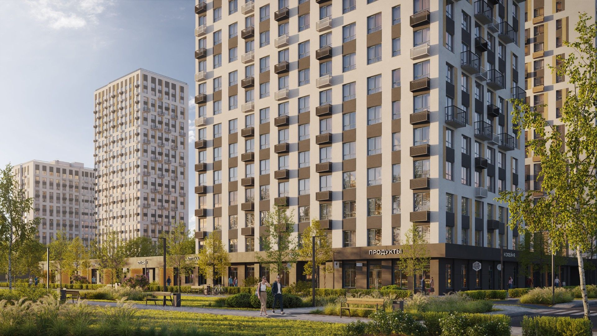 | Коммерческие помещения на первых этажах | Под магазины, кофейни и салоны услуг. | Все необходимое для жизни, не выходя из дома. |