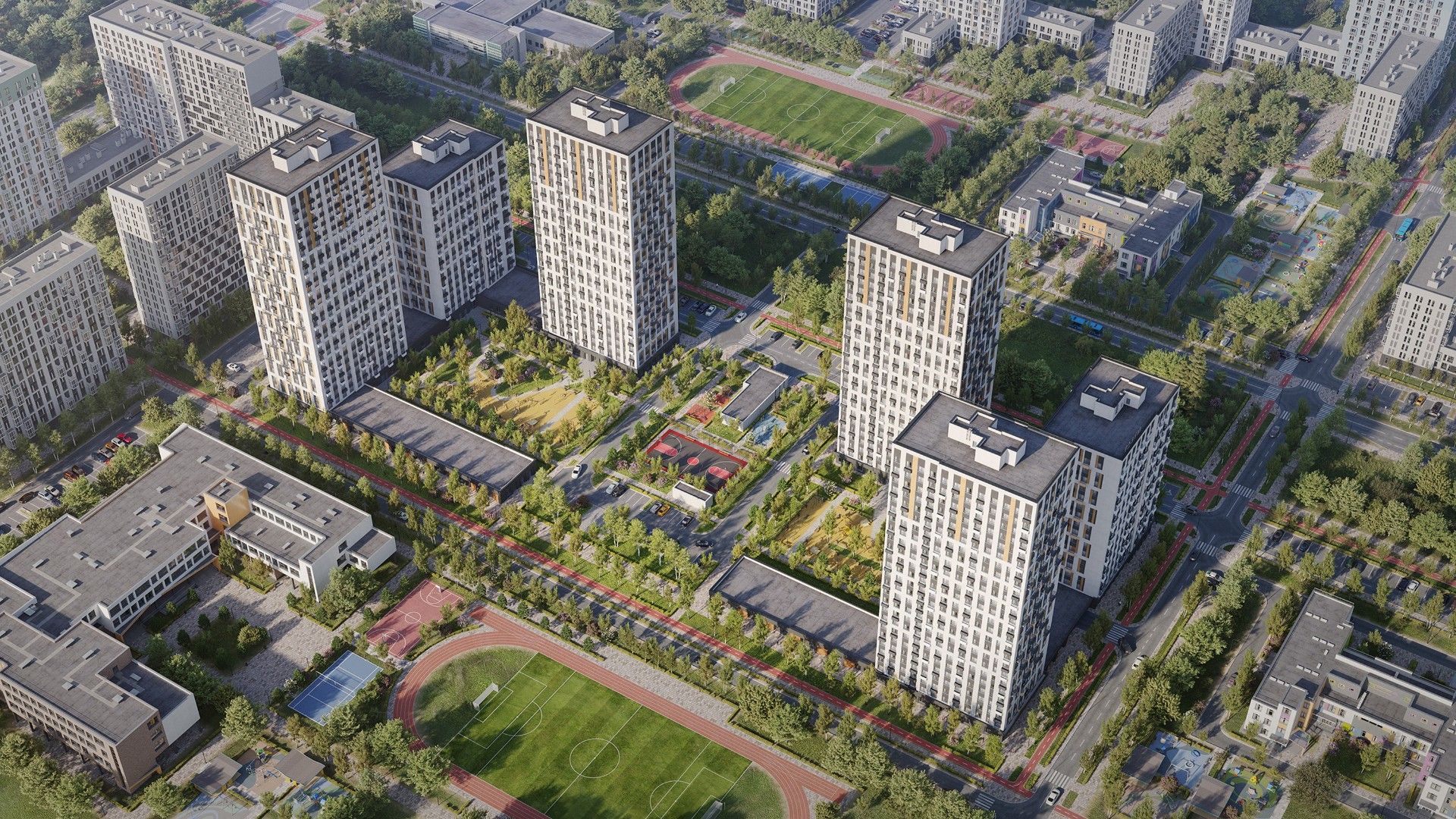 | Собственная инфраструктура | На территории комплекса запланированы детский сад на 150 мест и школа на 350 мест. | Шаговая доступность важнейших социальных объектов для семей с детьми. |