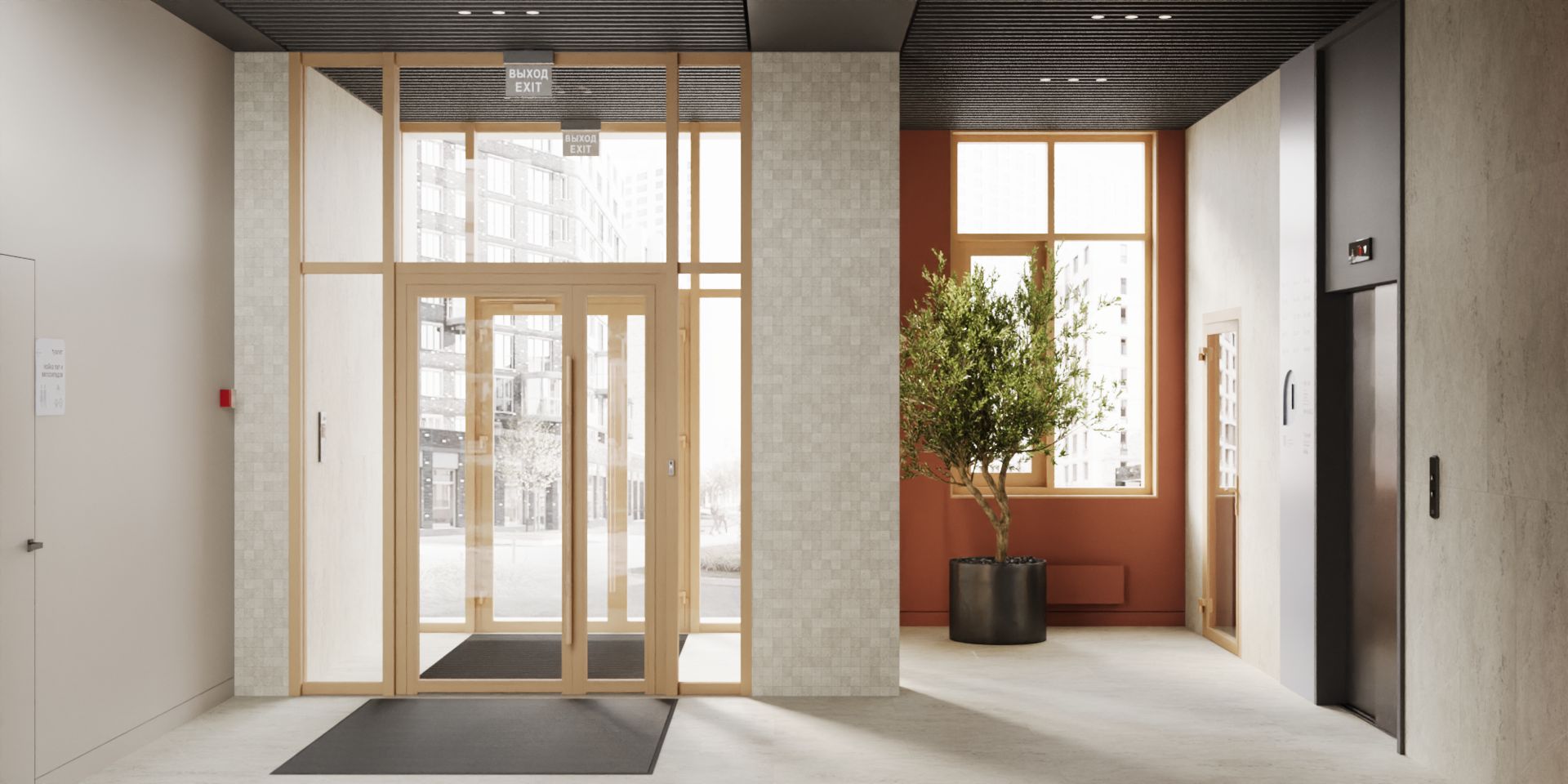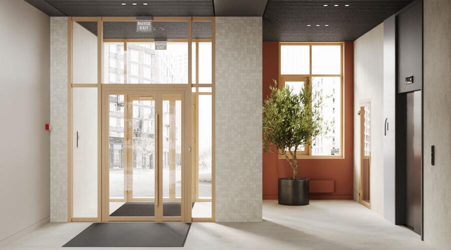 - Парадный вестибюль с ресепшеном и зонами отдыха.