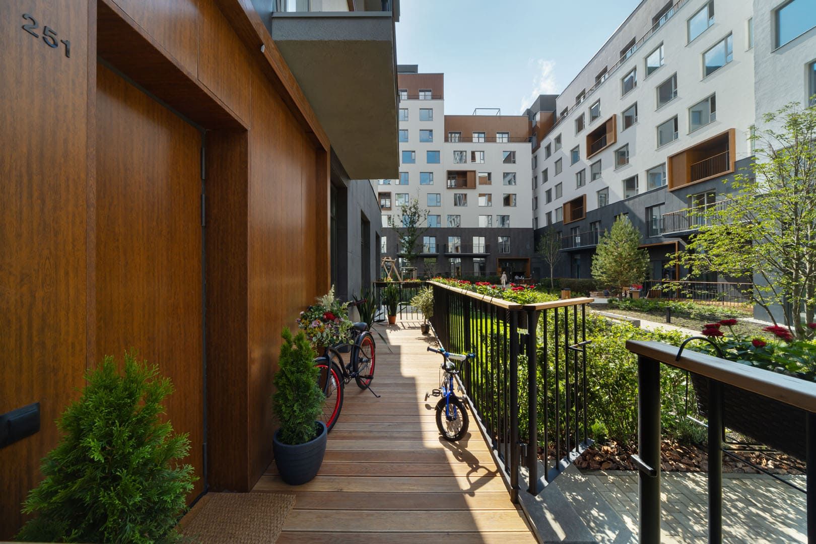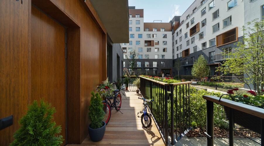 - На первых этажах расположены полезные сервисы: колясочные, помещения для хранения велосипедов.