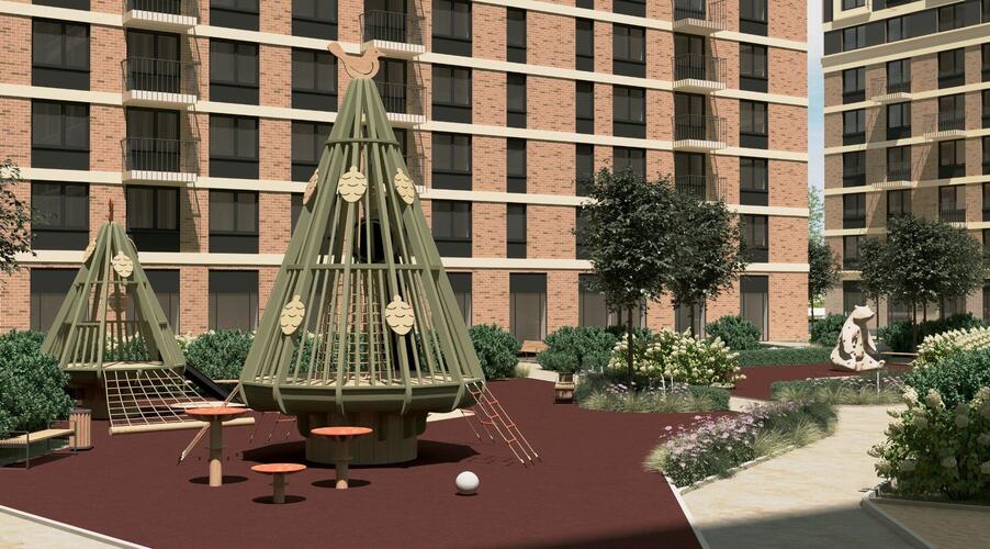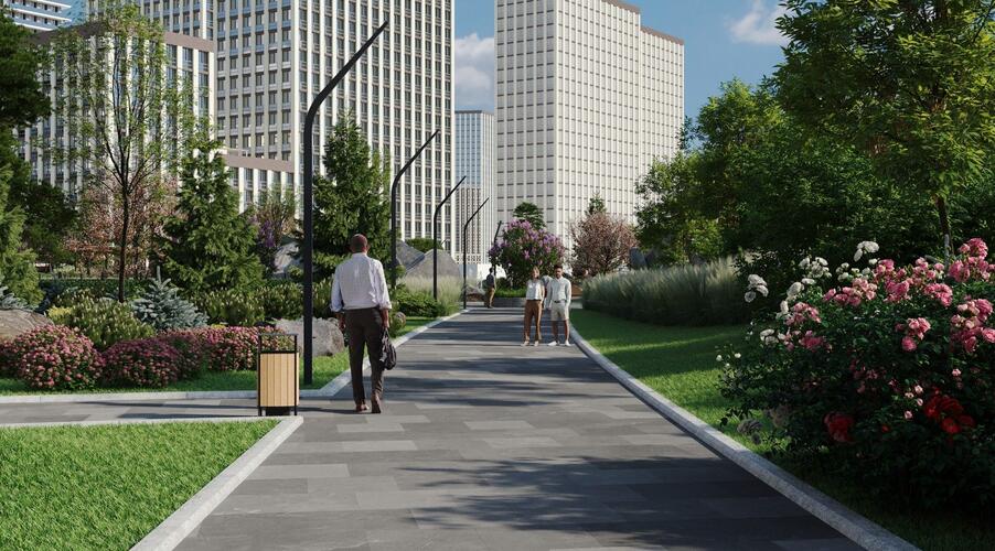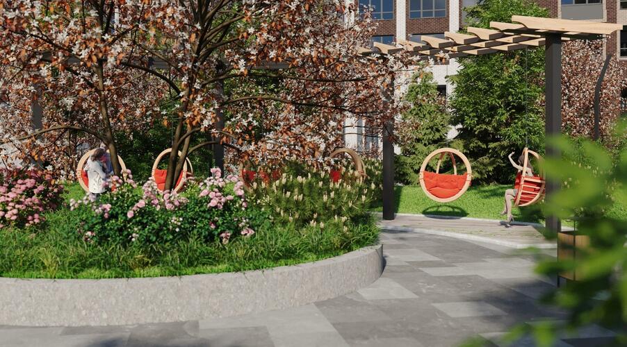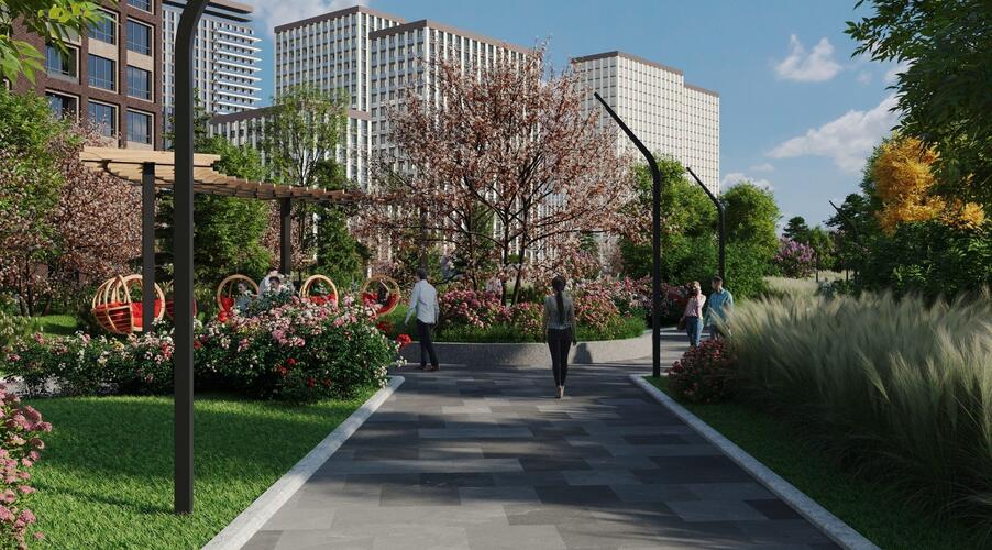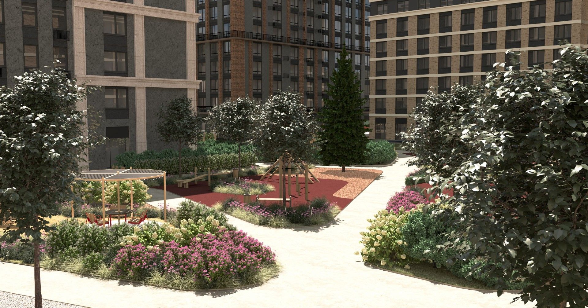 Девелопер создает полноценную среду для комфортной жизни внутри комплекса. Ключевые элементы благоустройства включают: