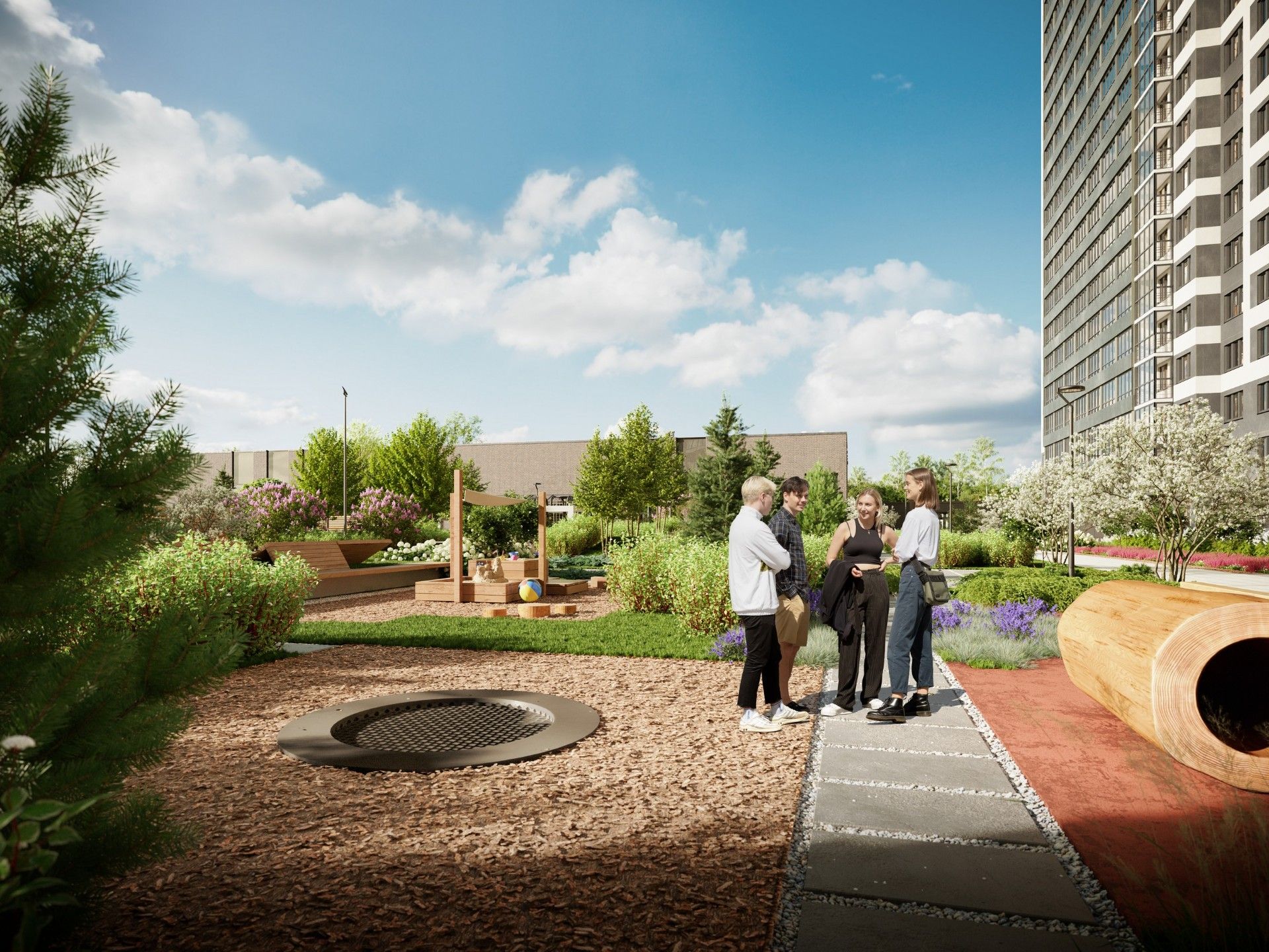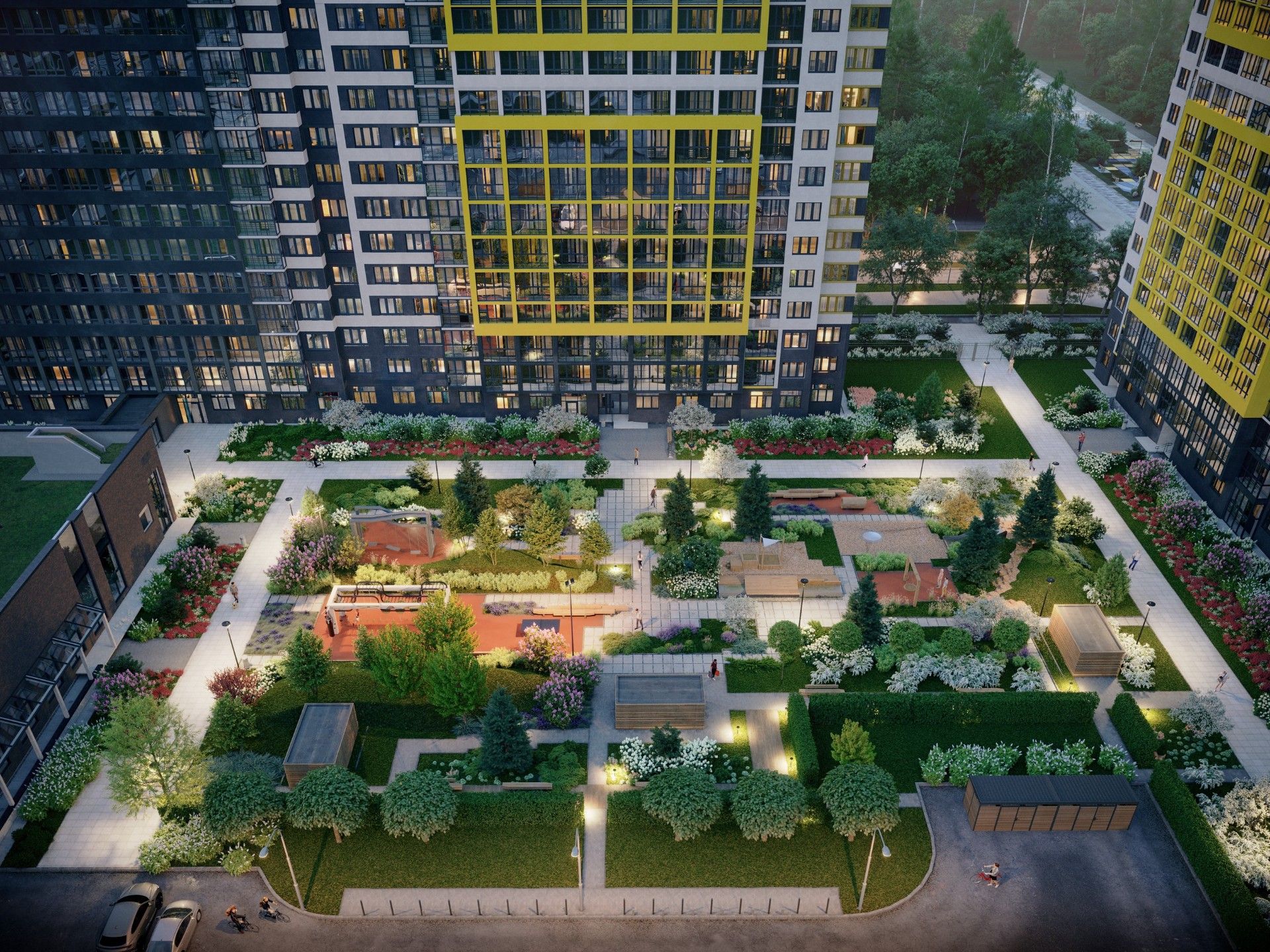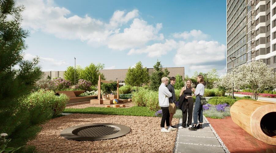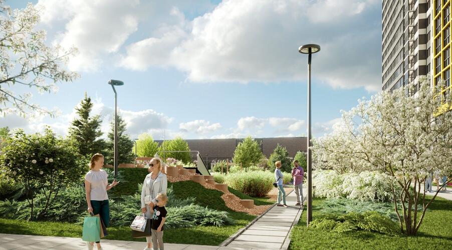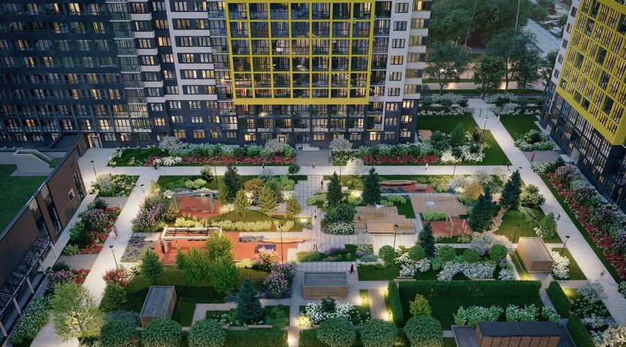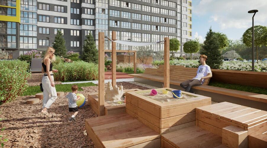 Концепция «двор без машин» обеспечивает безопасность и комфорт для всех жителей, особенно для семей с детьми. Территория комплекса благоустроена с учетом современных стандартов качества жизни.