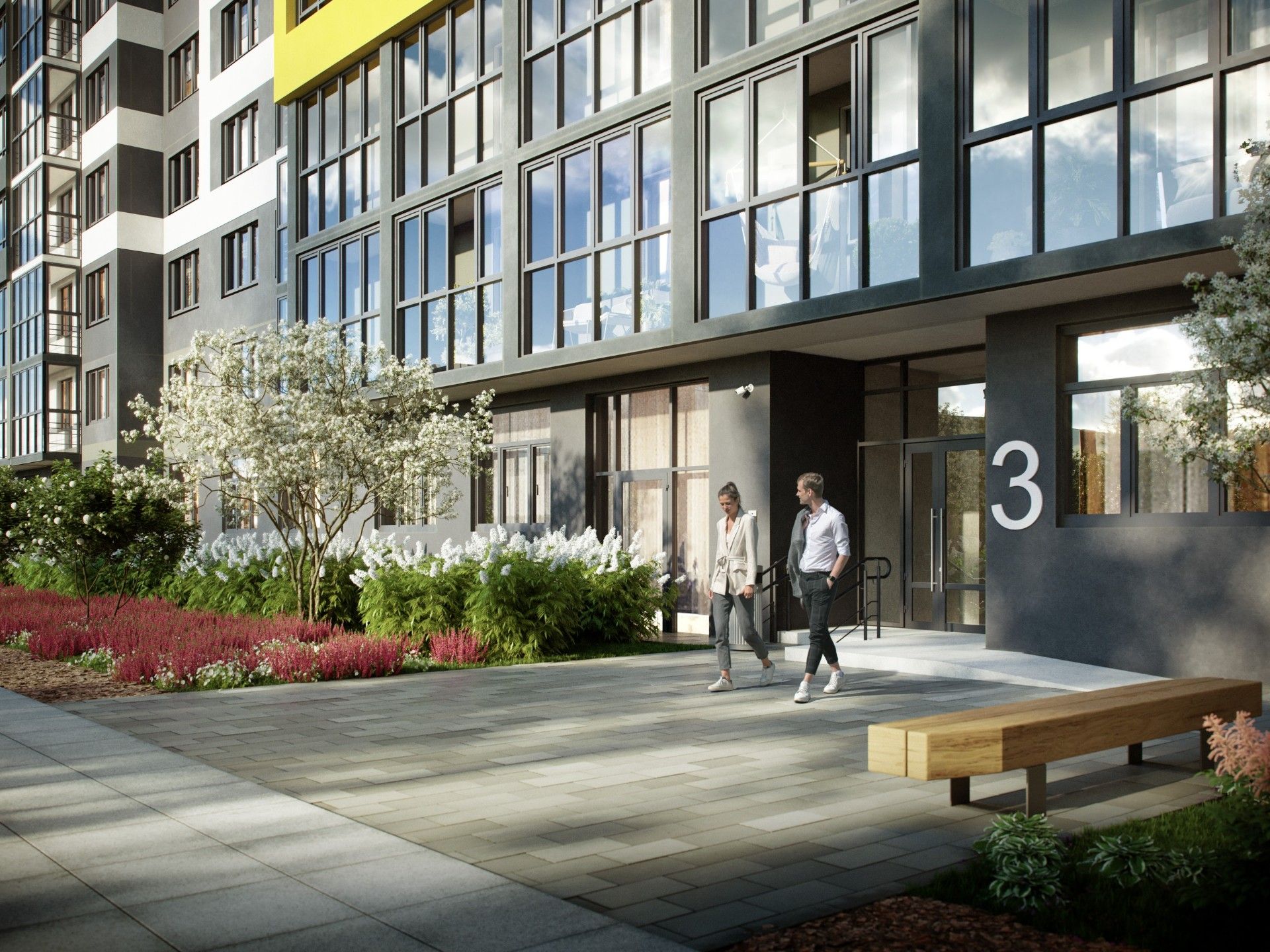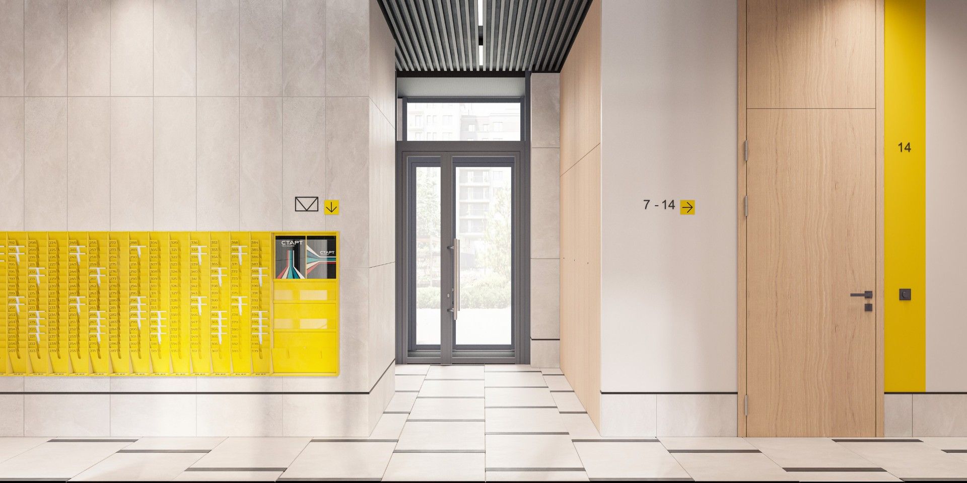 ЖК «Старт» — это современный жилой комплекс, воплощающий принципы современного минимализма и эстетики. Архитектурная концепция включает белоснежные фасады, создающие ощущение легкости и свежести, и контрастные черные оконные рамы, добавляющие выразительности. Вертикальные элементы фасадов визуально увеличивают высоту здания, придавая ему утонченный вид.