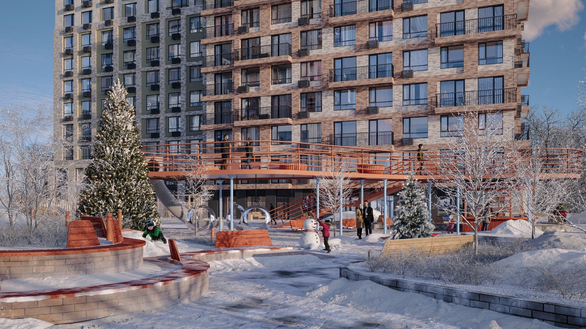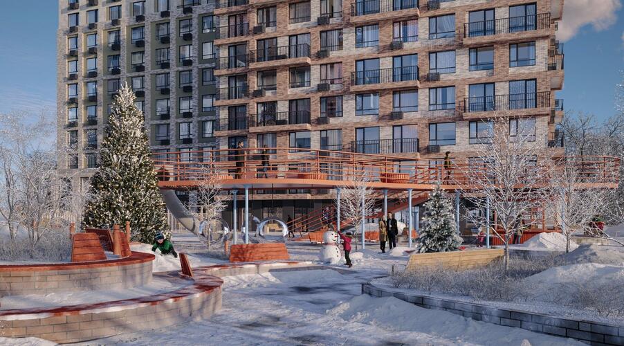 - Для детей: Собственный муниципальный детский сад на 100 мест, расположенный на территории ЖК, и несколько детских площадок во дворах, созданных с использованием экологичных и безопасных материалов.