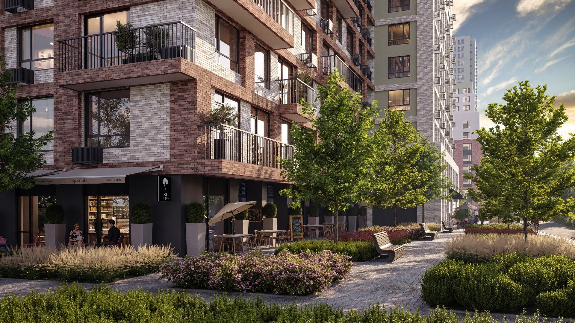 - Коммерция: На первых этажах домов запланированы помещения под магазины, кофейни и пункты выдачи, что обеспечит жителям доступ к сервисам первого уровня.