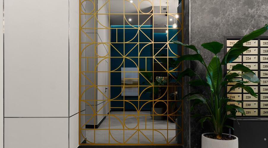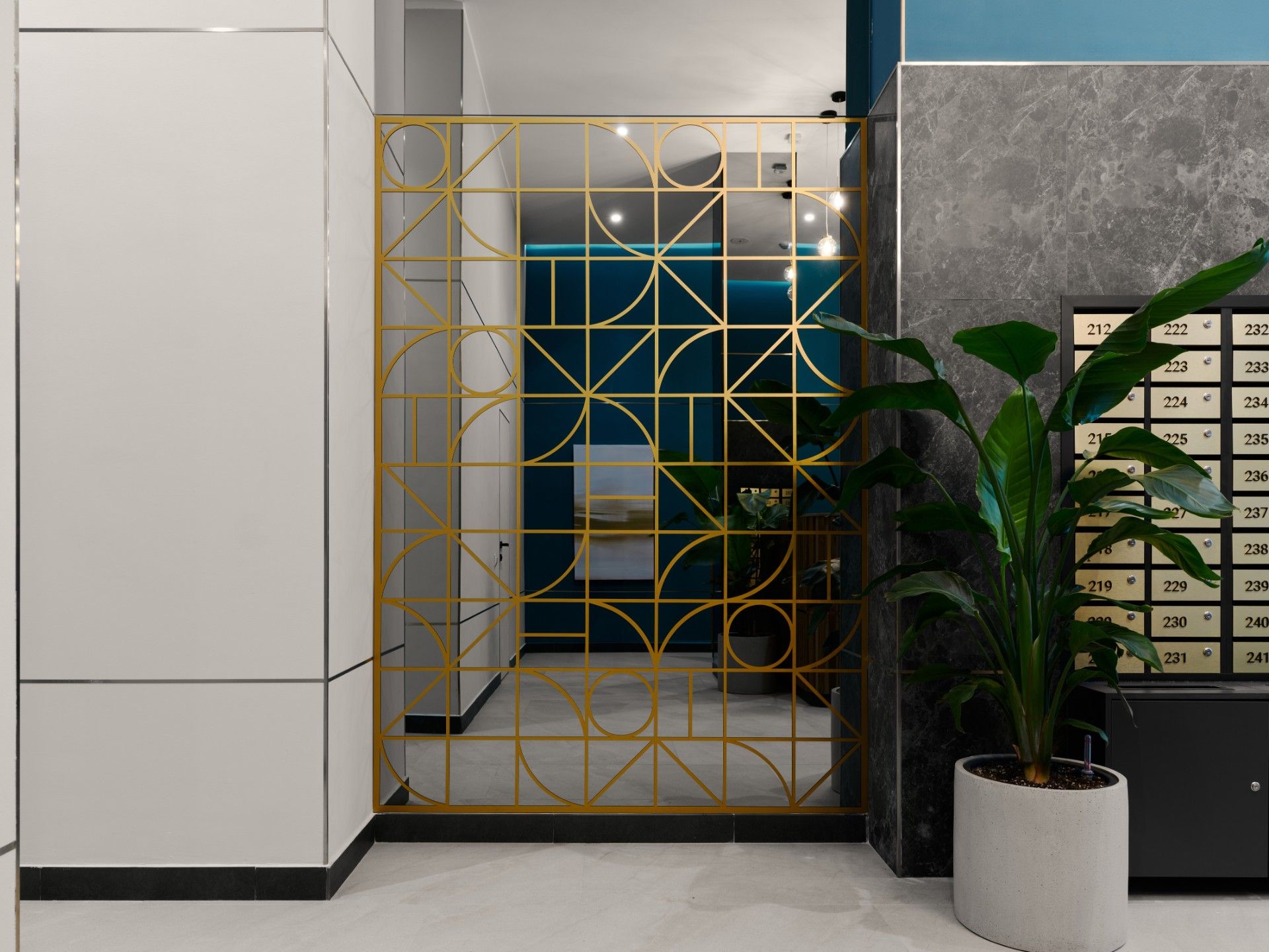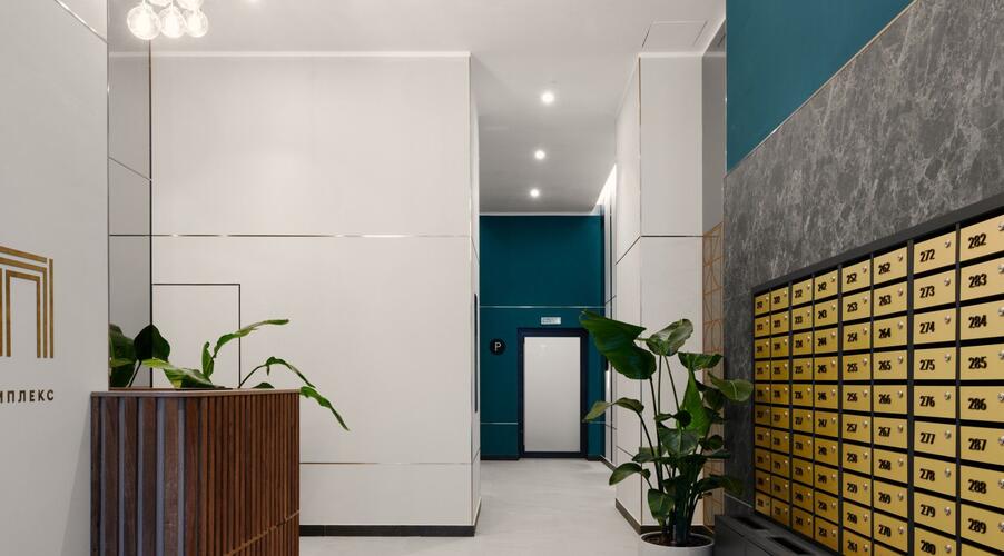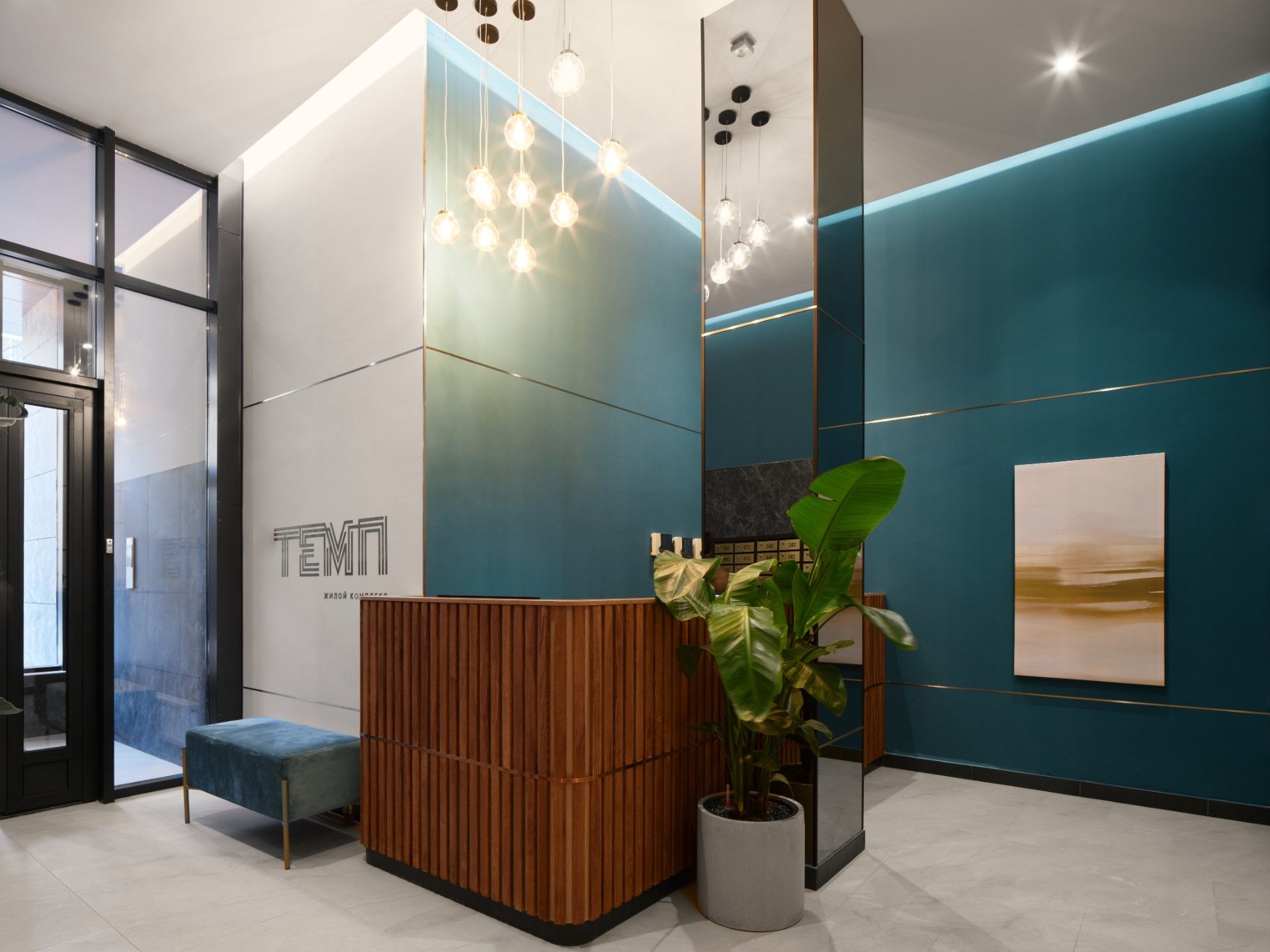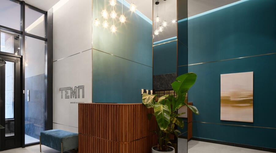 - Дизайнерские холлы: Входные группы становятся визитной карточкой дома. Здесь создано пространство с высокими потолками, живыми растениями, зонами для ожидания и Wi-Fi. Применяются элементы саунд-дизайна и арома-дизайна для создания приятной атмосферы.