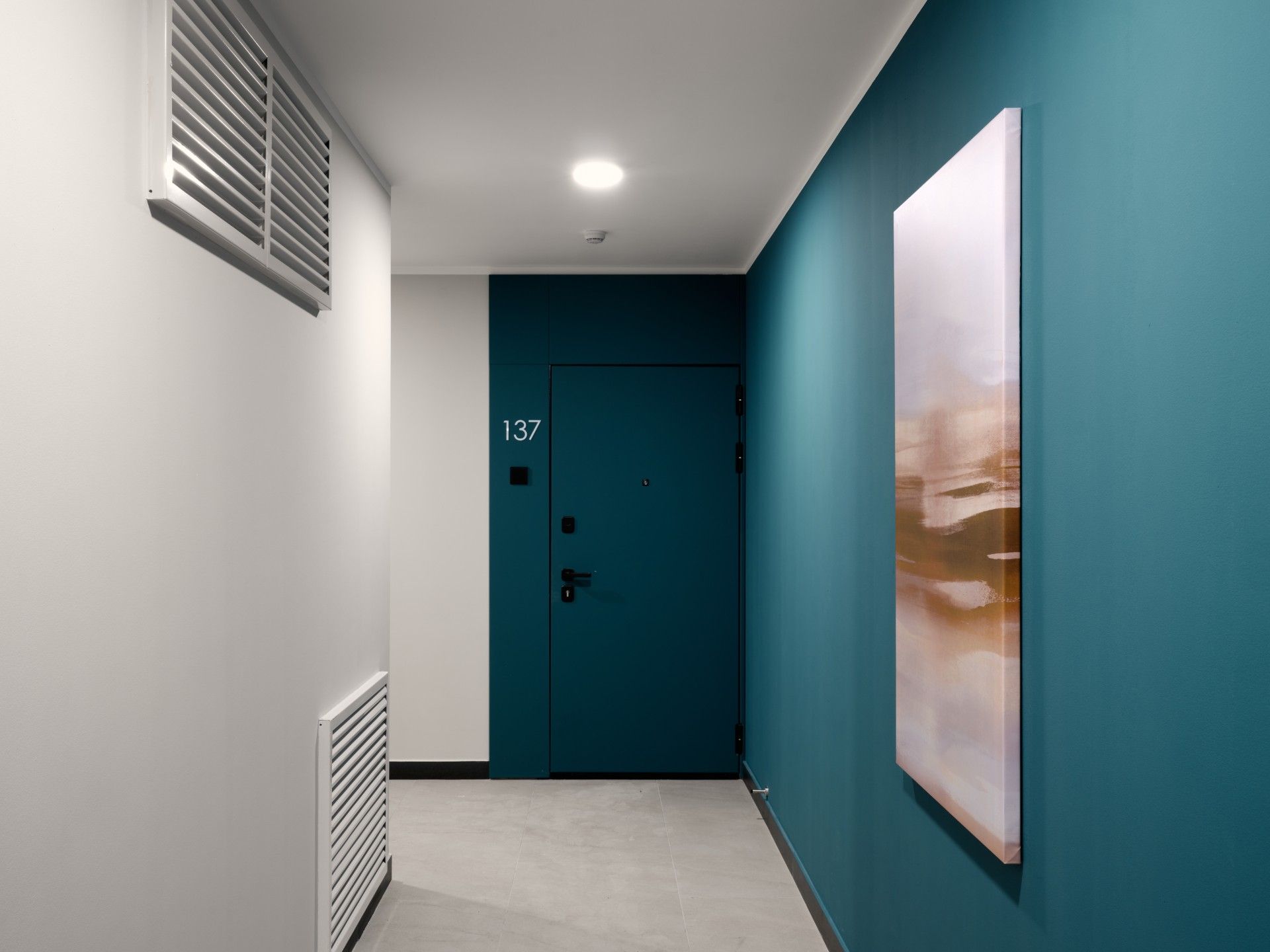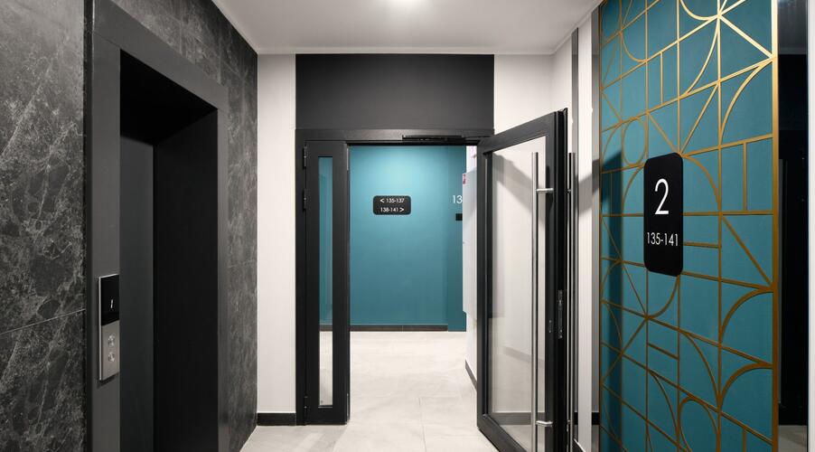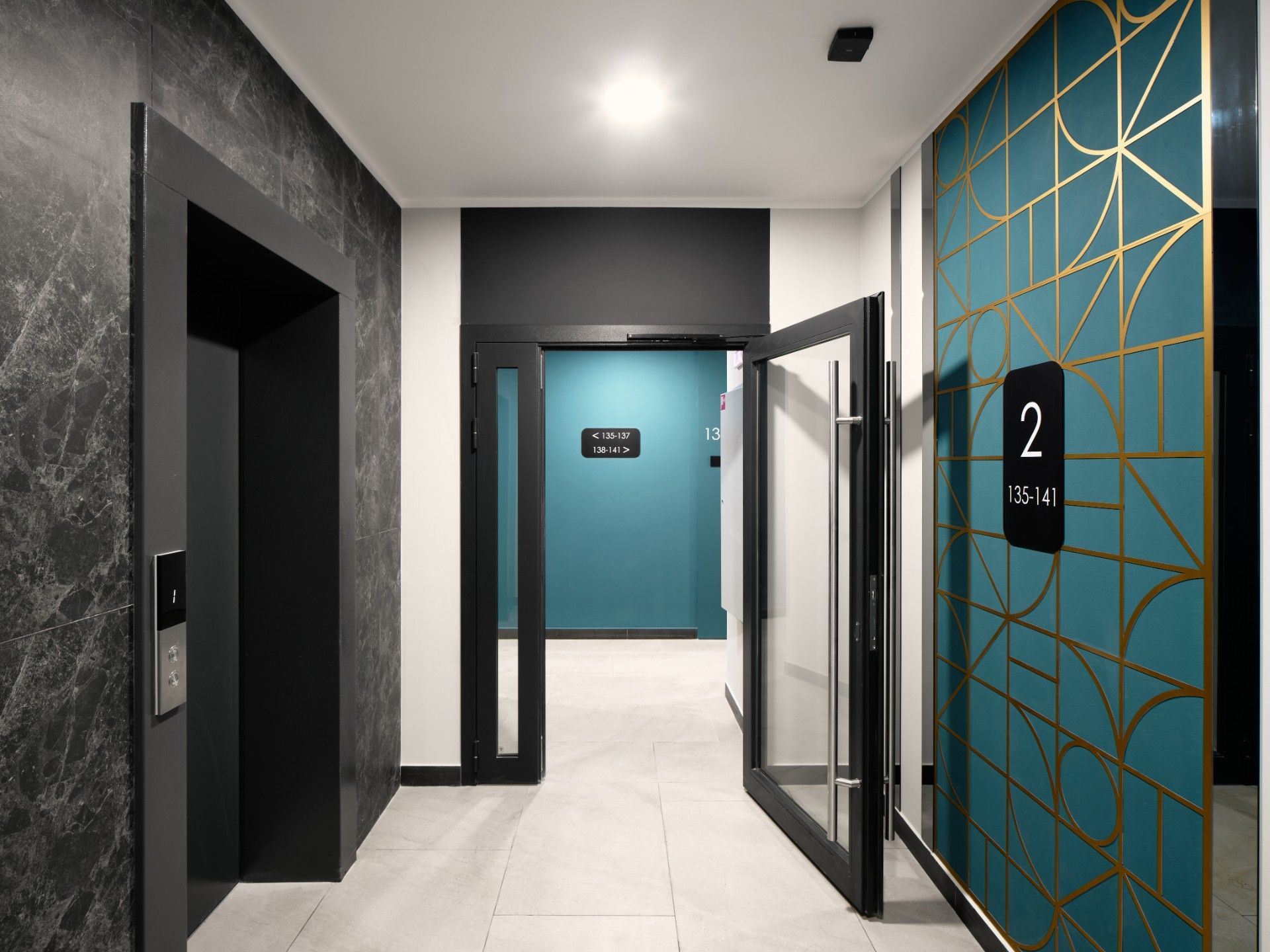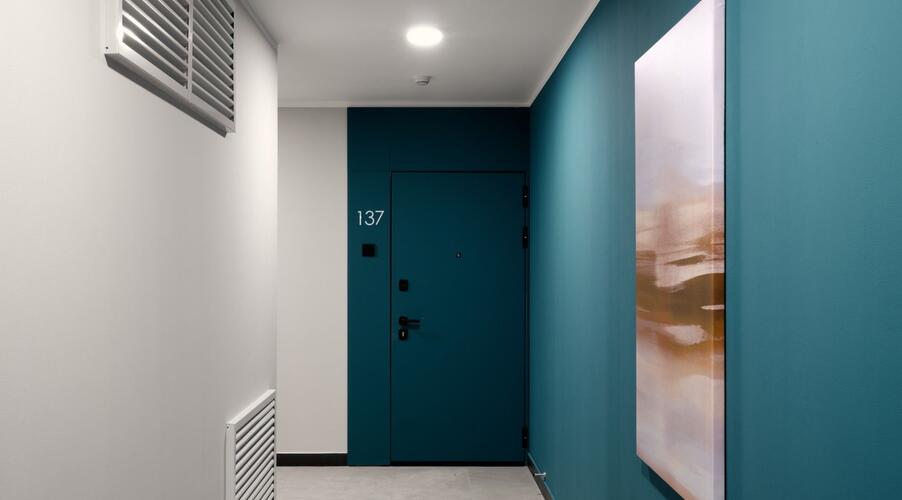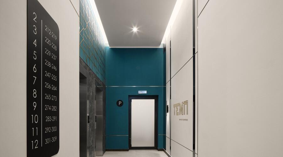 - Дизайнерские холлы: Входные группы становятся визитной карточкой дома. Здесь создано пространство с высокими потолками, живыми растениями, зонами для ожидания и Wi-Fi. Применяются элементы саунд-дизайна и арома-дизайна для создания приятной атмосферы.