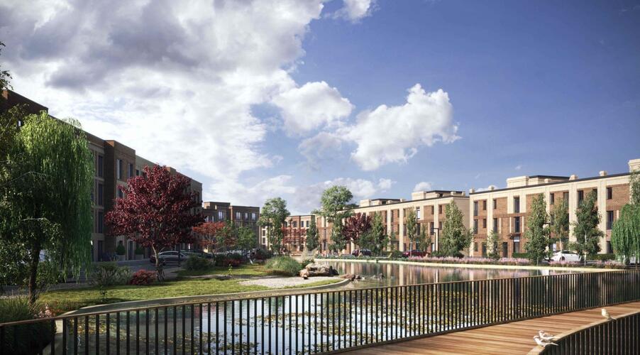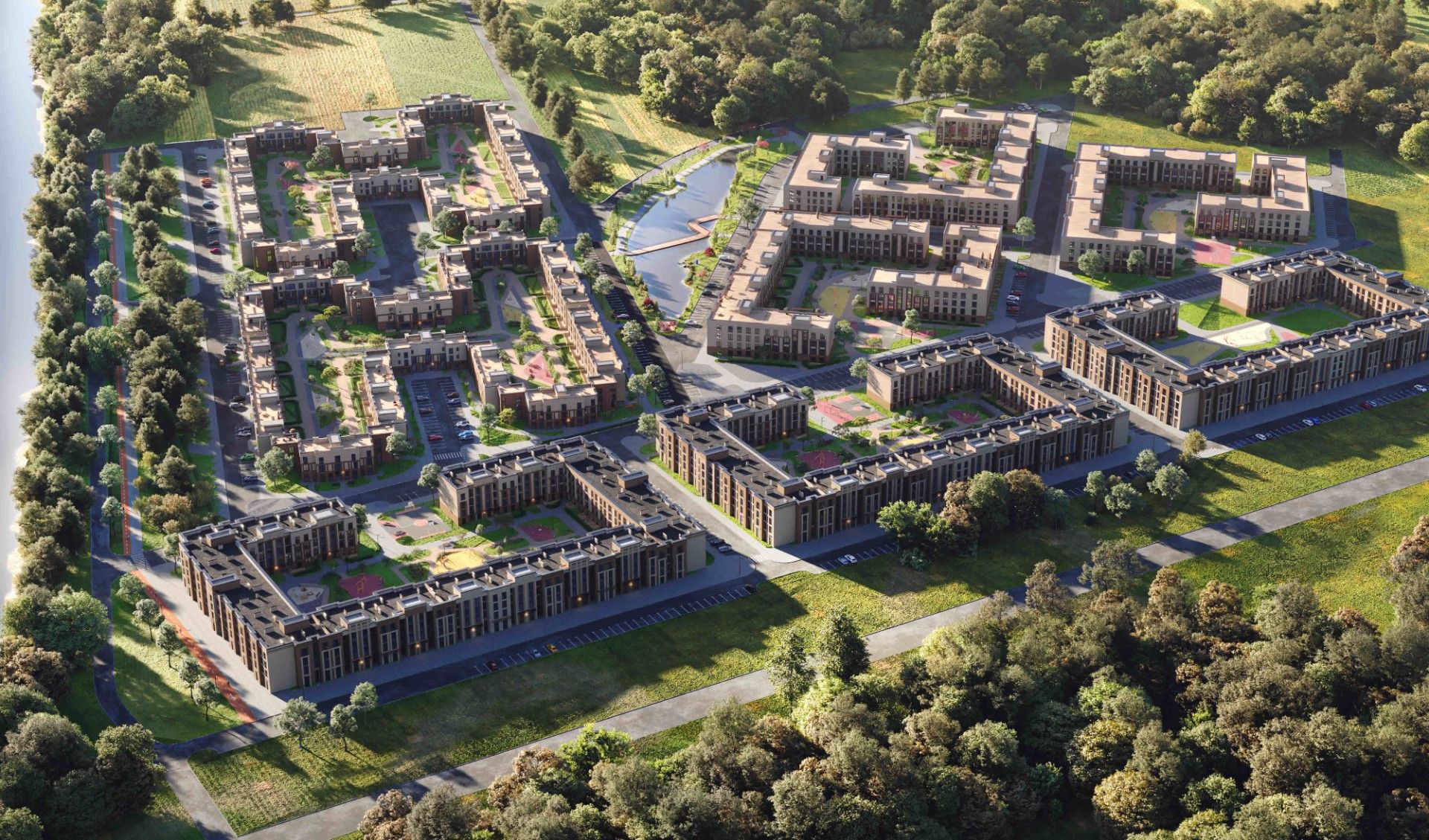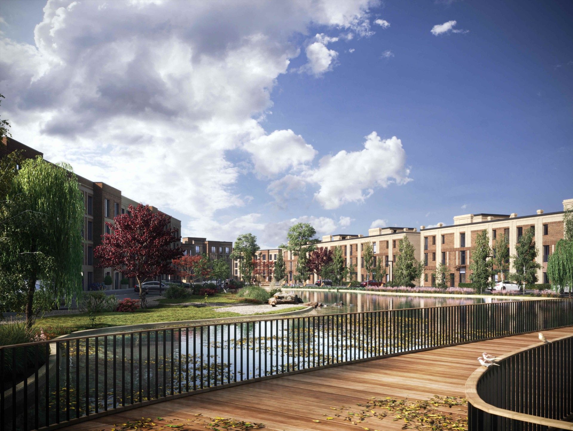 - Мини-парк с собственным прудом — центр притяжения жителей.