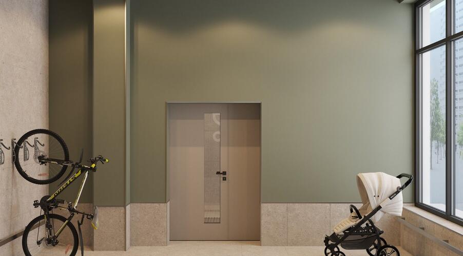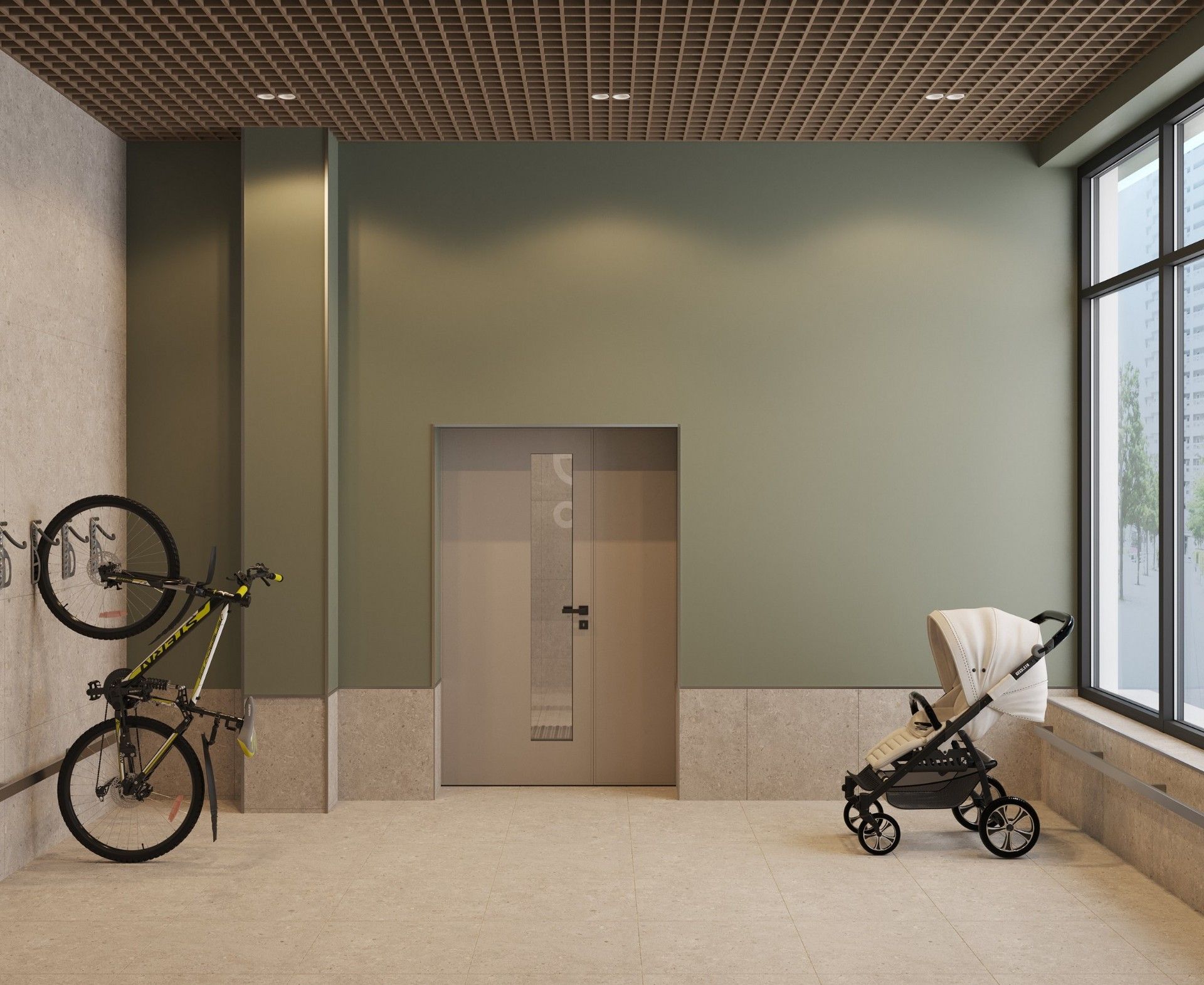 - Просторные колясочные и детские игровые комнаты на первых этажах.