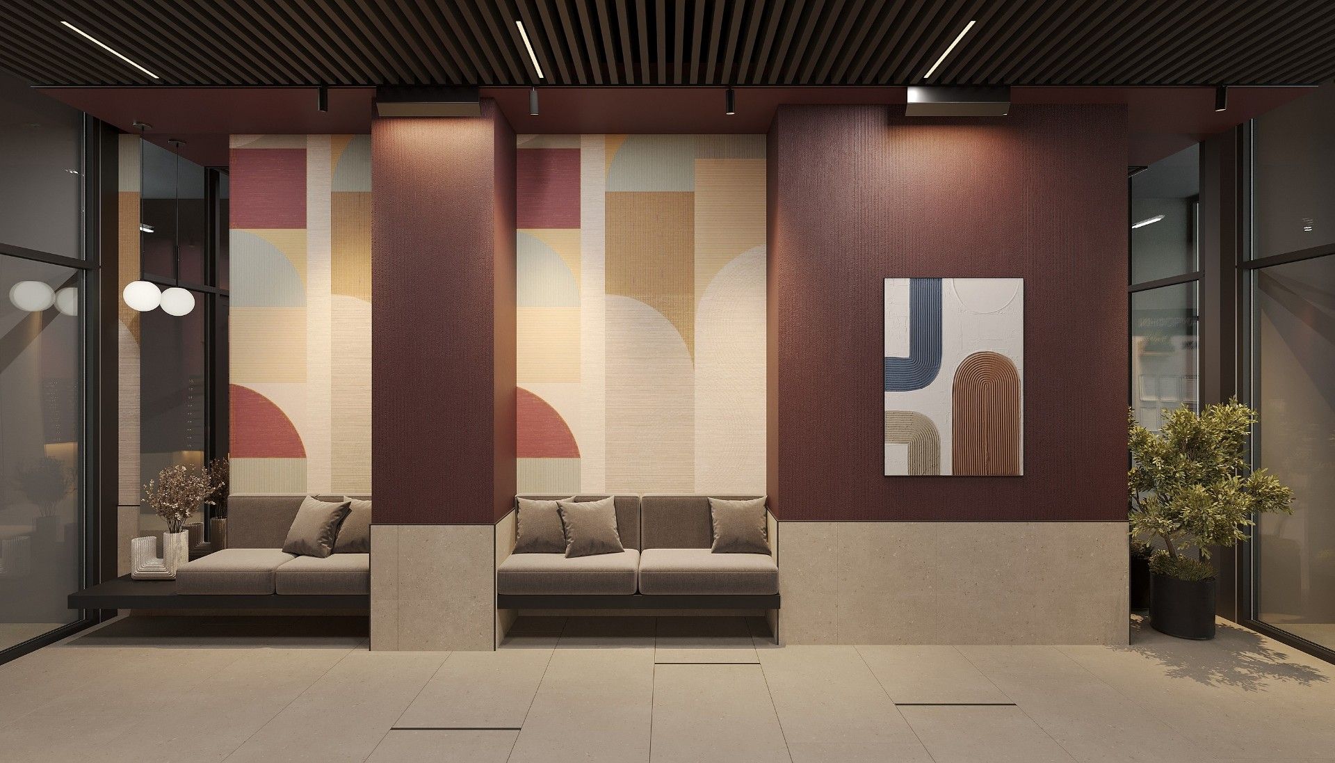 - Дизайнерские холлы и парадные с отделкой, стилизованной под времена года, заменяют стандартные подъезды.